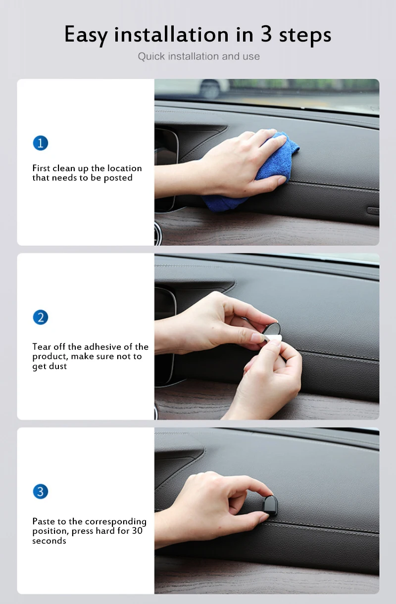 * 3. Надежно приклеивается импортным клеем, приклеивается к любому материалу, его нелегко уронить и не наносить повреждений вашему автомобилю