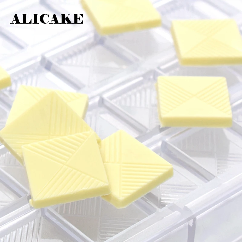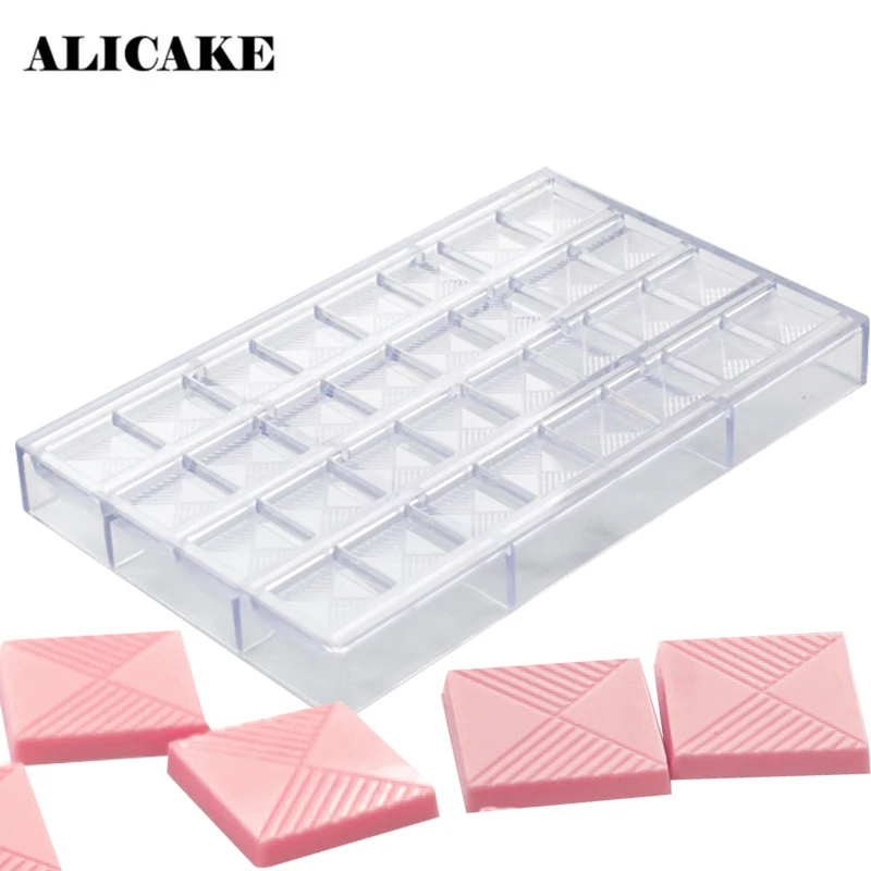 Поликарбонатные формы для шоколада, 32 полости, 6 г 31,5x31,5x5,5 мм, кубики с полосками, инструменты для выпечки шоколада, Пластиковая форма для шоколада