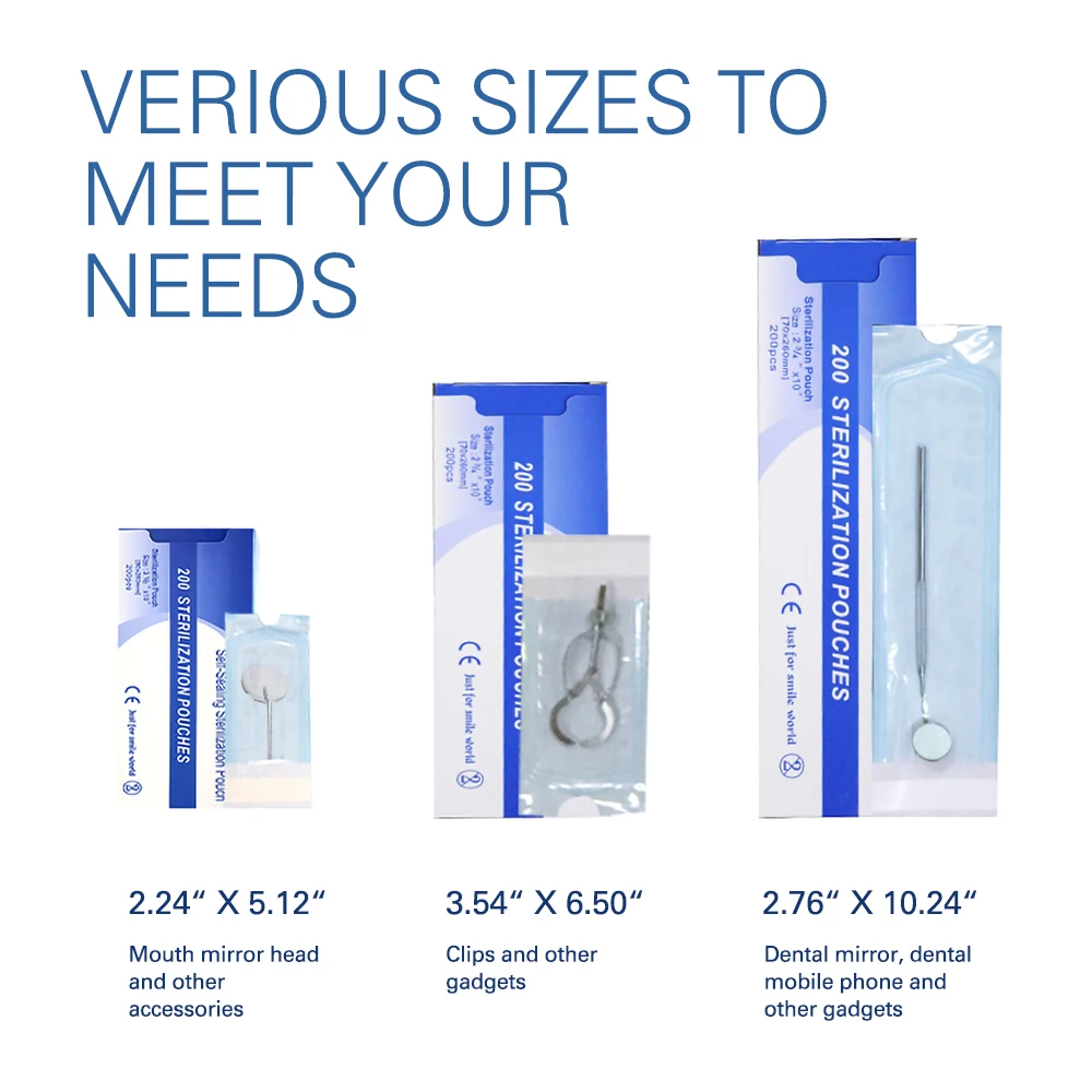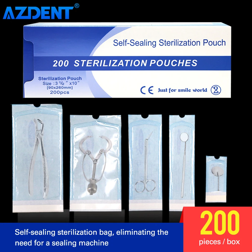 Одноразовые самозапечатывающиеся мешочки для стерилизации AZDENT 200 шт.кор. бумажные мешочки для татуировок, стоматологических гвоздей, арт-сумка, аксессуары