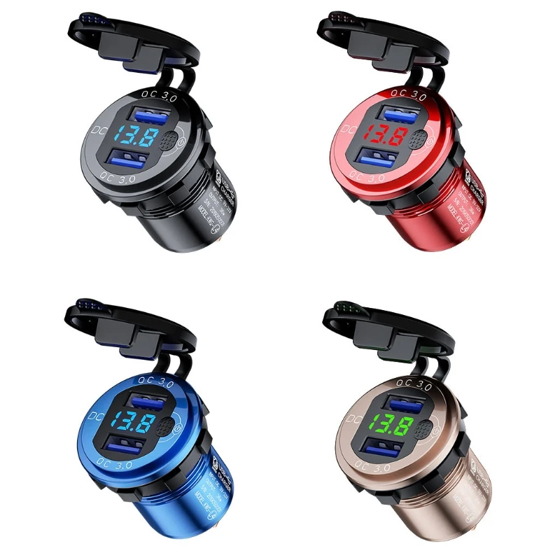 12V 24V Алюминий Водонепроницаемый двойной QC3.0 для быстрой зарядки с usb-портом, Зарядное устройство Мощность выход Светодиодный переключатель вольтметра волоконно оптический кабель для автомобиля морской грузовик внедорожник