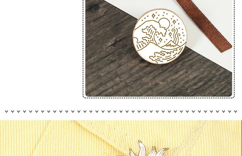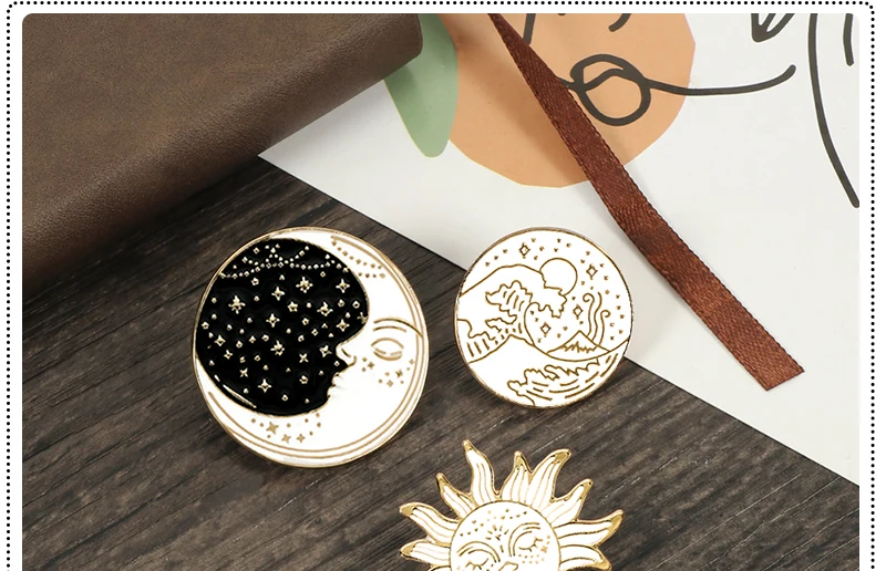 Эмалированные булавки Sun Moon Sea Wave с золотой звездой креативные Броши художественные круглые значки подарки для друзей отворот украшения из джинсы
