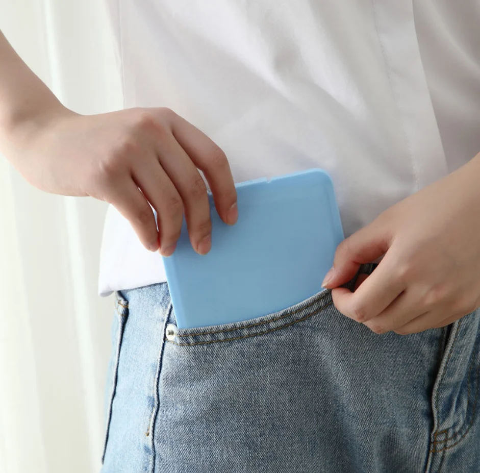 Коробка из хорошего качества ПВХ. Практично в сумочке.