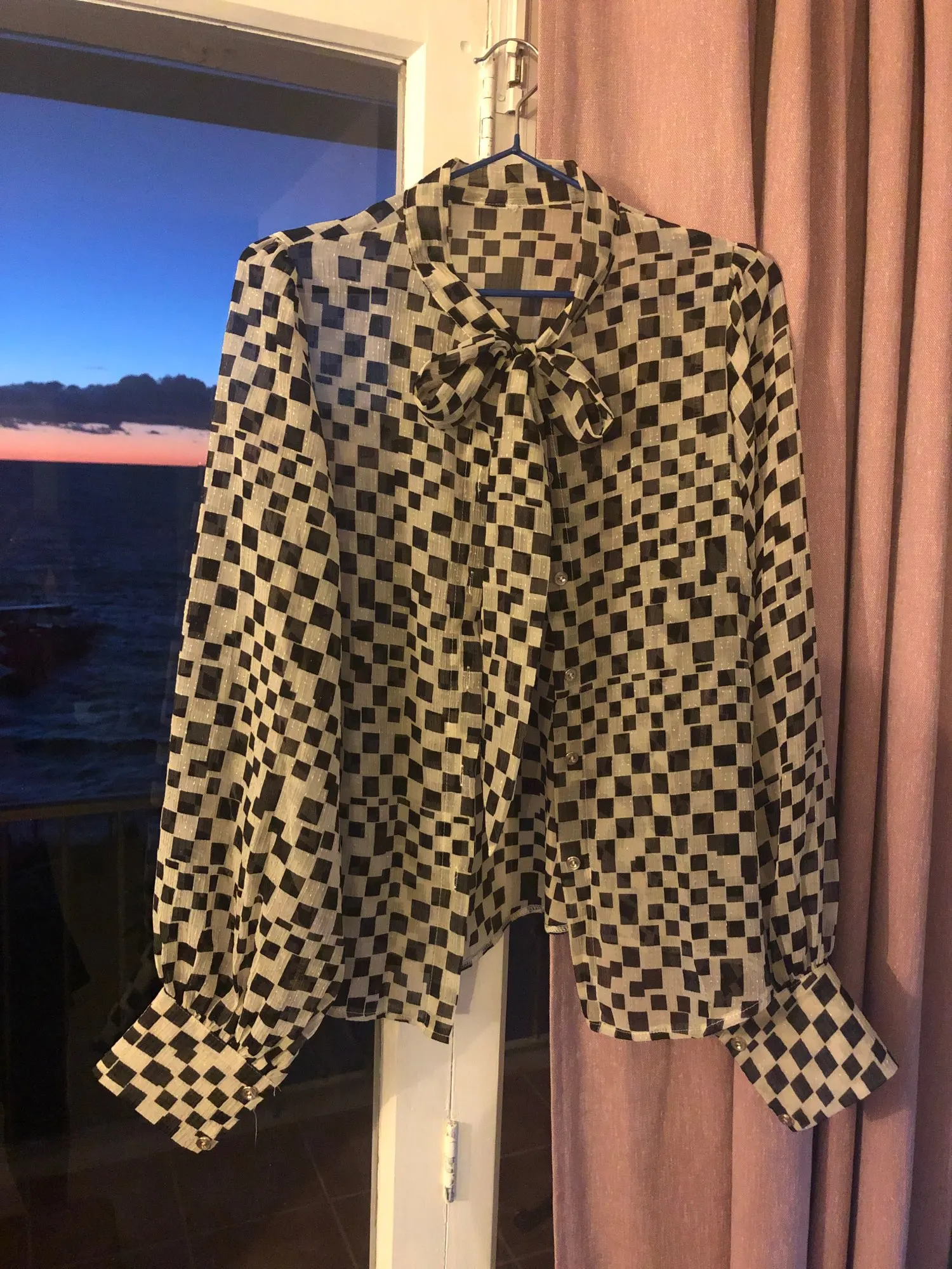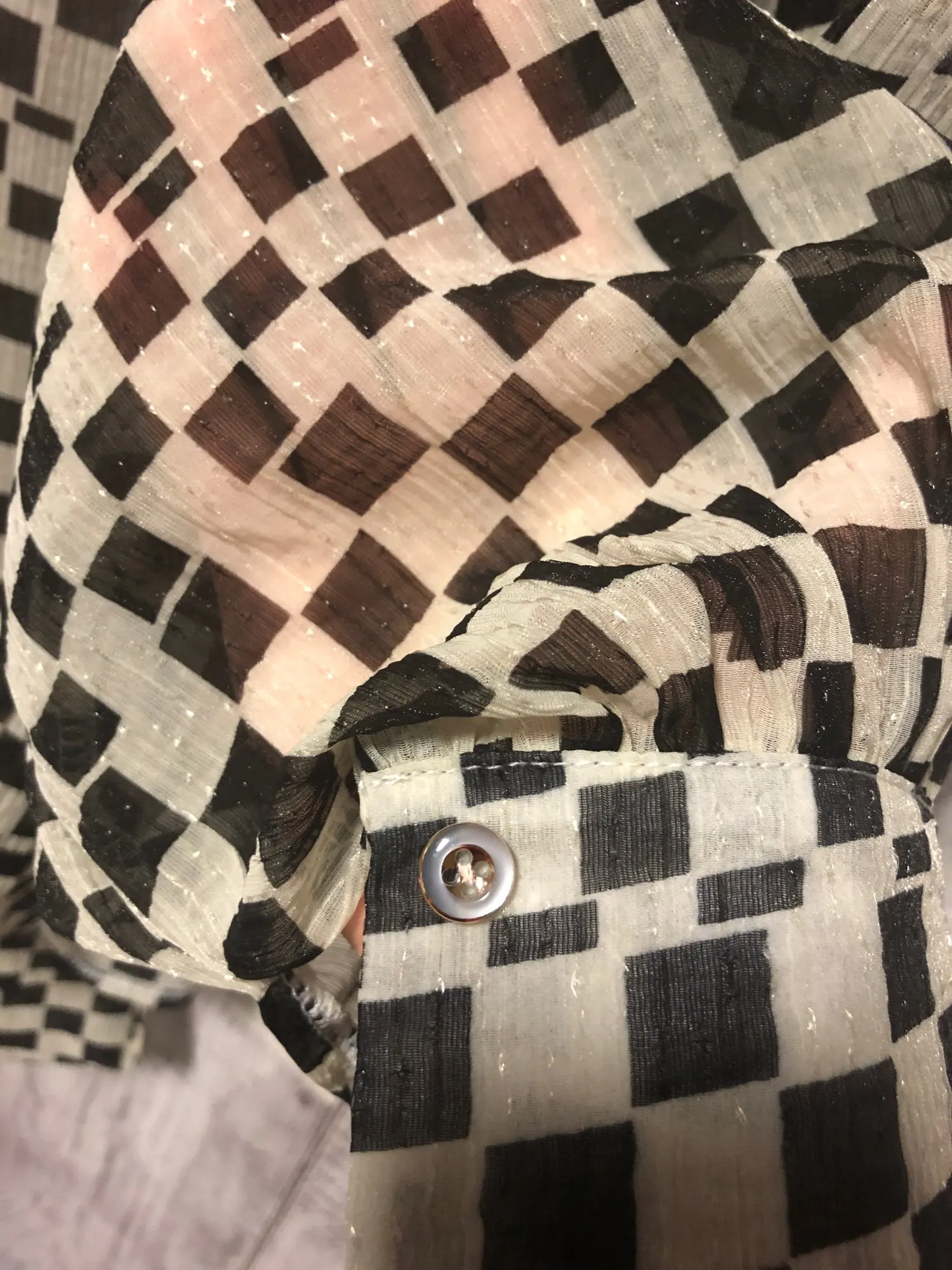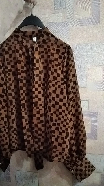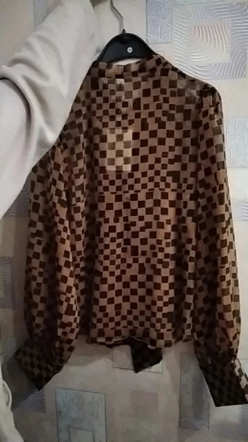Блузка просто шикарная!Смотрится элегантно с брюками, юбками, жакетами.Также отлично сочетается с джинсами.Совершенно базовая вещь, но в тоже время за счёт "шашечек" смотрится оригинально.Давно хотела такую.Искренне советую!