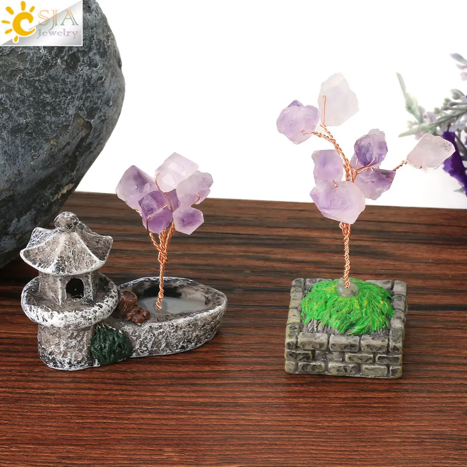 Украшения для дома CSJA, G596, фиолетовые кристаллы, украшения для дома в виде деревьев, миниатюрные пейзажи