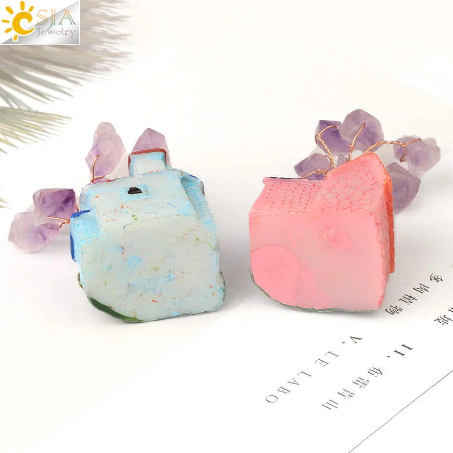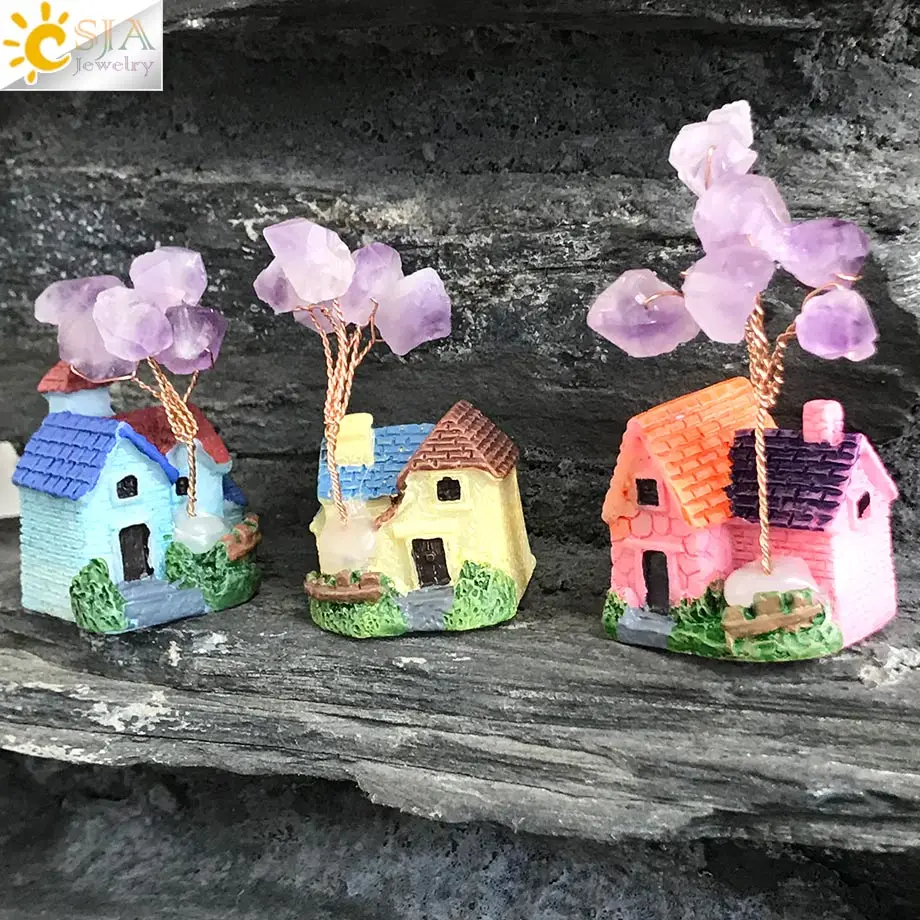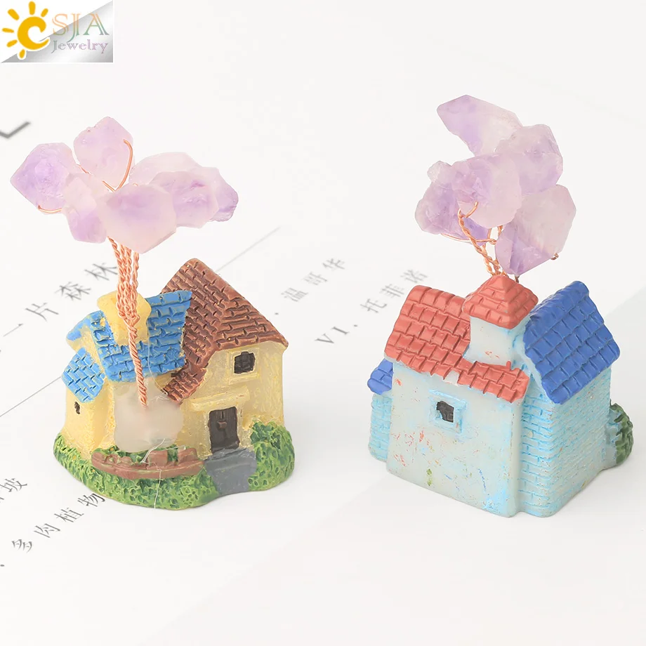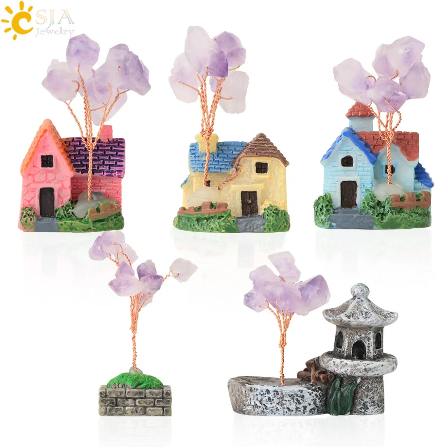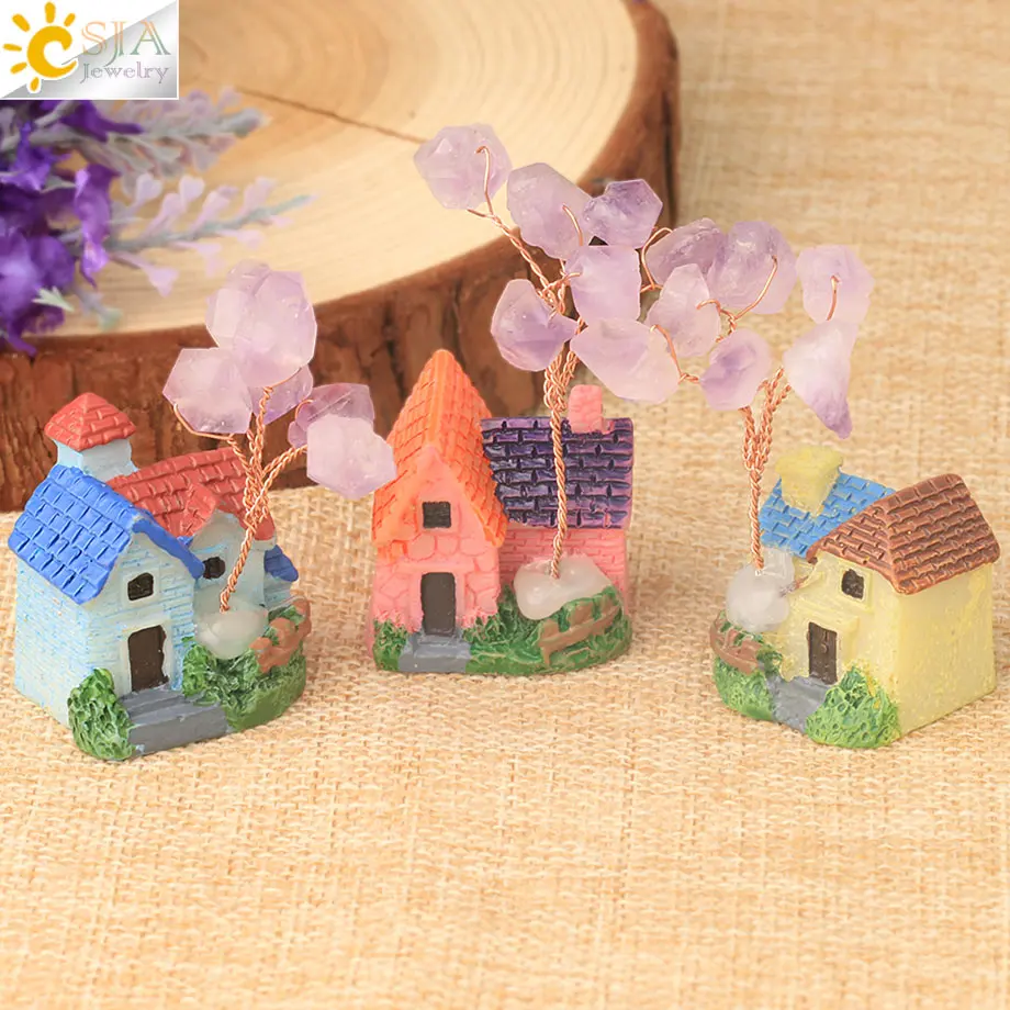 CSJA Сказочный Сад, миниатюра вилла дом украшения для домашнего декора фиолетовый кристалл дерево жизнь ремесла микро пейзаж детские игрушки G596