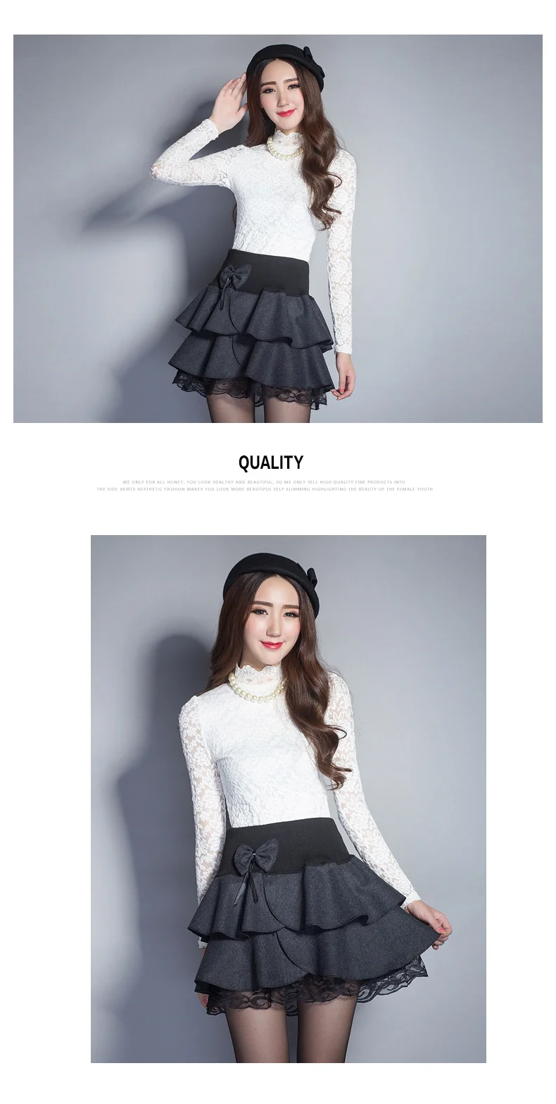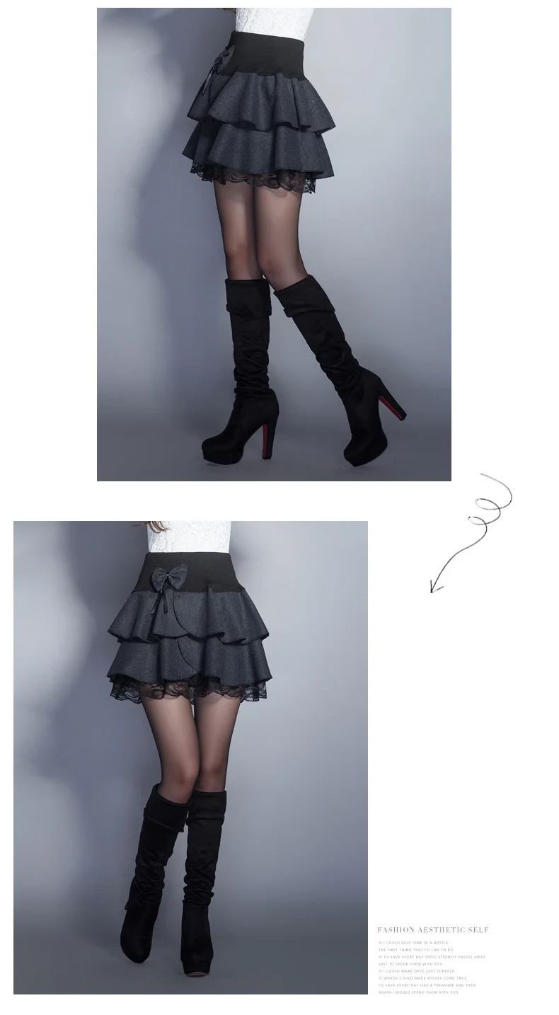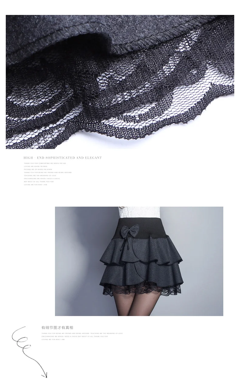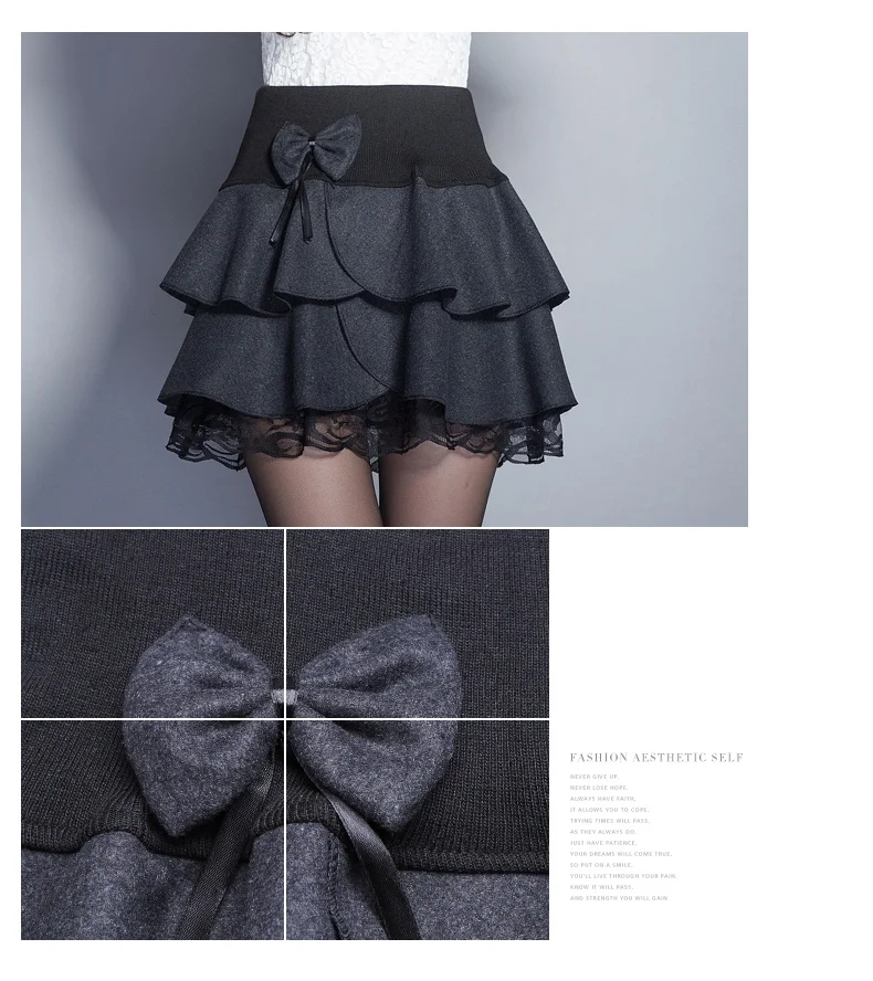 Юбка-пачка Женская шерстяная с завышенной талией, эластичная, с бантом и оборками, зима 2020