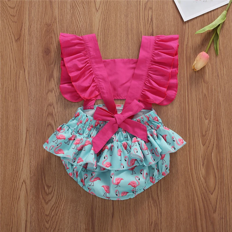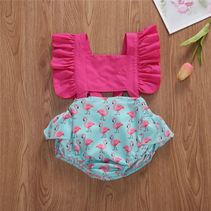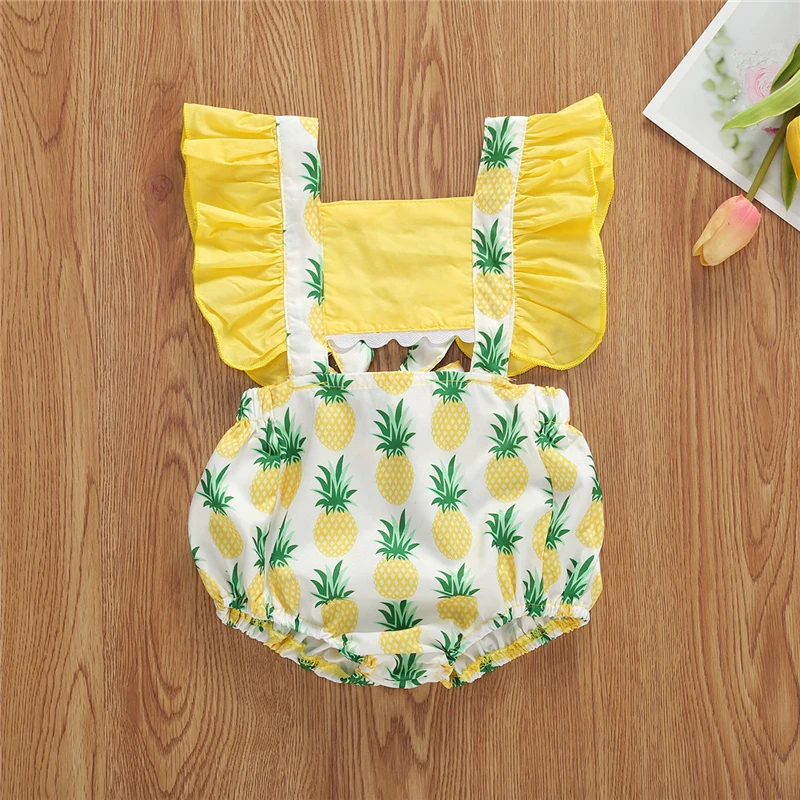2021 Летний комбинезон для новорожденных девочек с принтом фламинго, ананаса, без рукавов, с открытой спиной, 0-24 месяцев, детская одежда