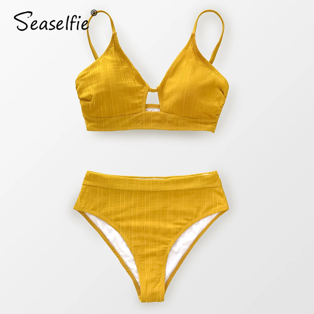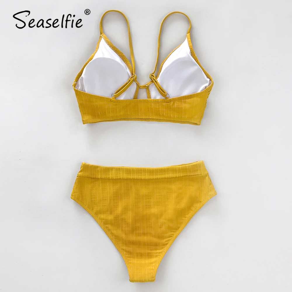 SEASELFIE сексуальные комплекты бикини с высокой талией с перекруче...