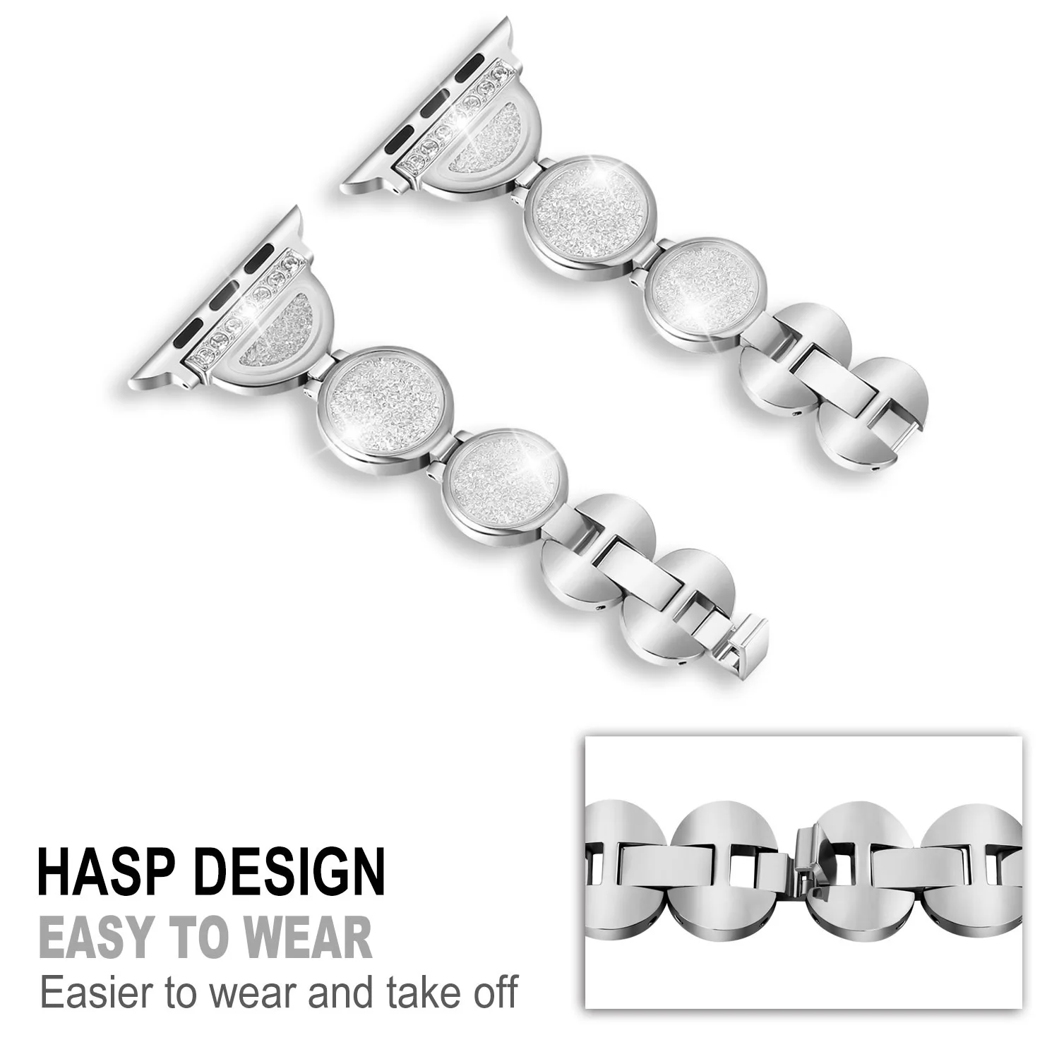 Ремешок со стразами для apple watch 3, 38 мм, 42 мм, iwatch series 6, 5, 4, SE, браслет из нержавеющей стали для apple watch 40 мм, 44 мм