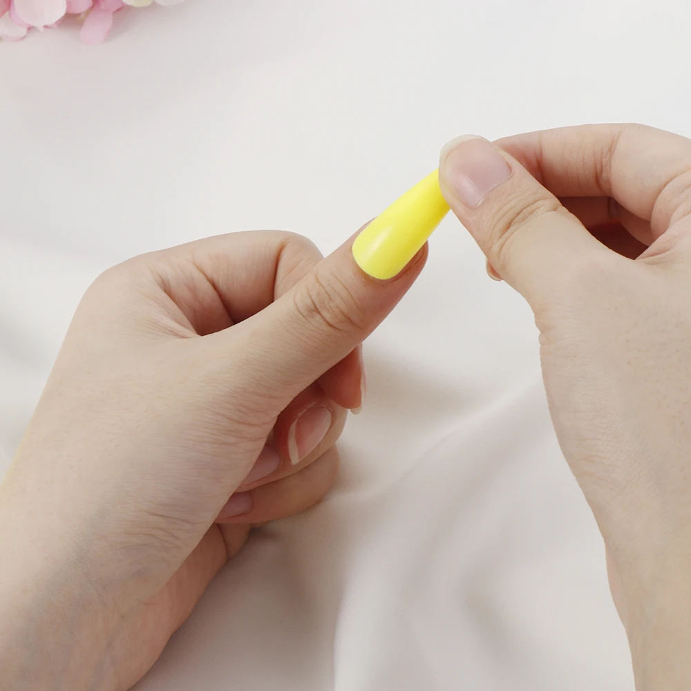 Очень красивые ногти. Дольше, чем у моего салона. Я протерла свои грядки 90% спиртом, затем протерла ацетоном, дайте высохнуть, затем приклеила ногти. Очень хорошее качество!
