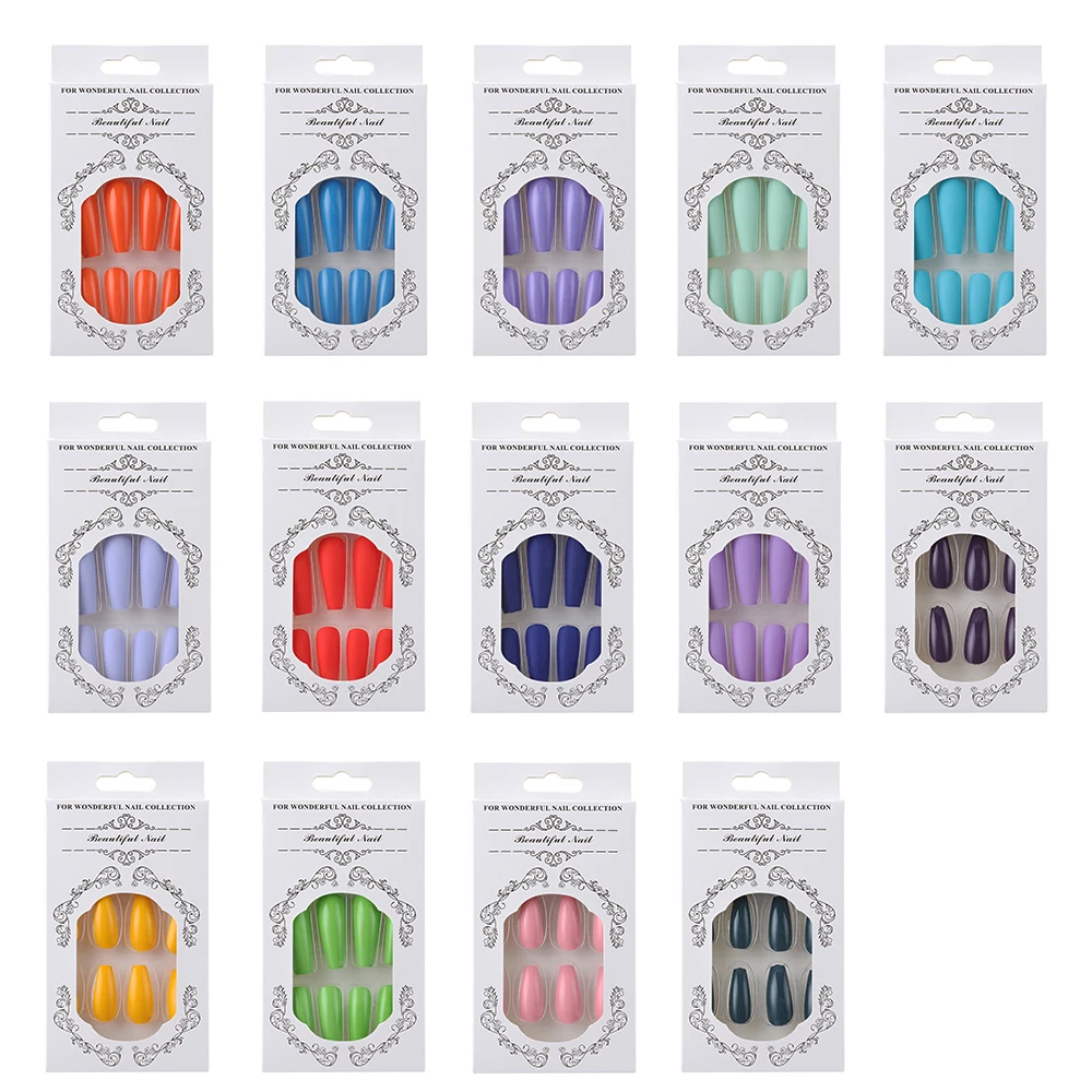 Накладные ногти, длинные, съемные, с полным покрытием, цветные, красота, искусственные ногти, 24 шт.