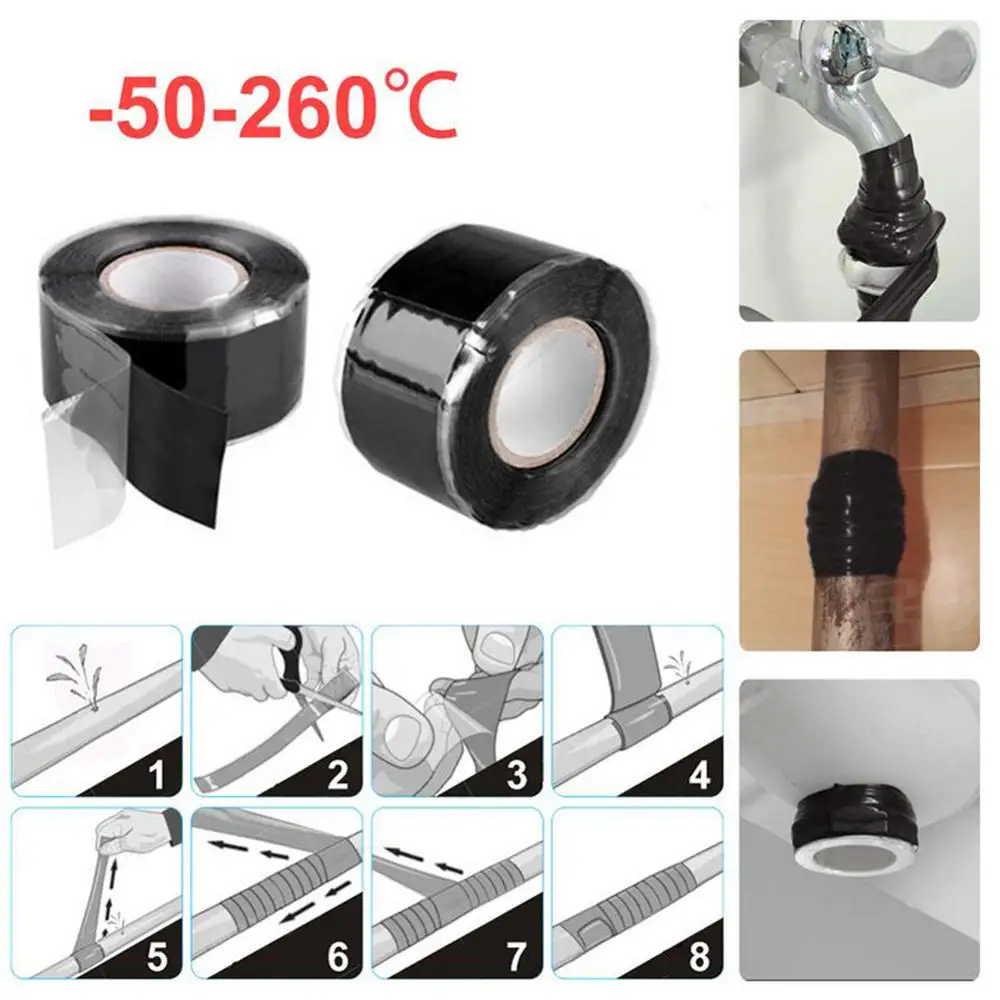 Водонепроницаемая силиконовая ремонтная лента 1,5 м, самоклеящаяся прочная черная резиновая силиконовая клейкая лента, самоклеящаяся проволочная лента