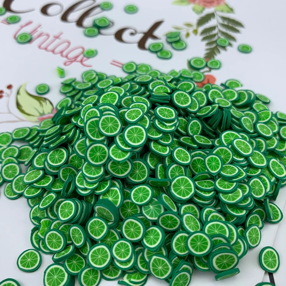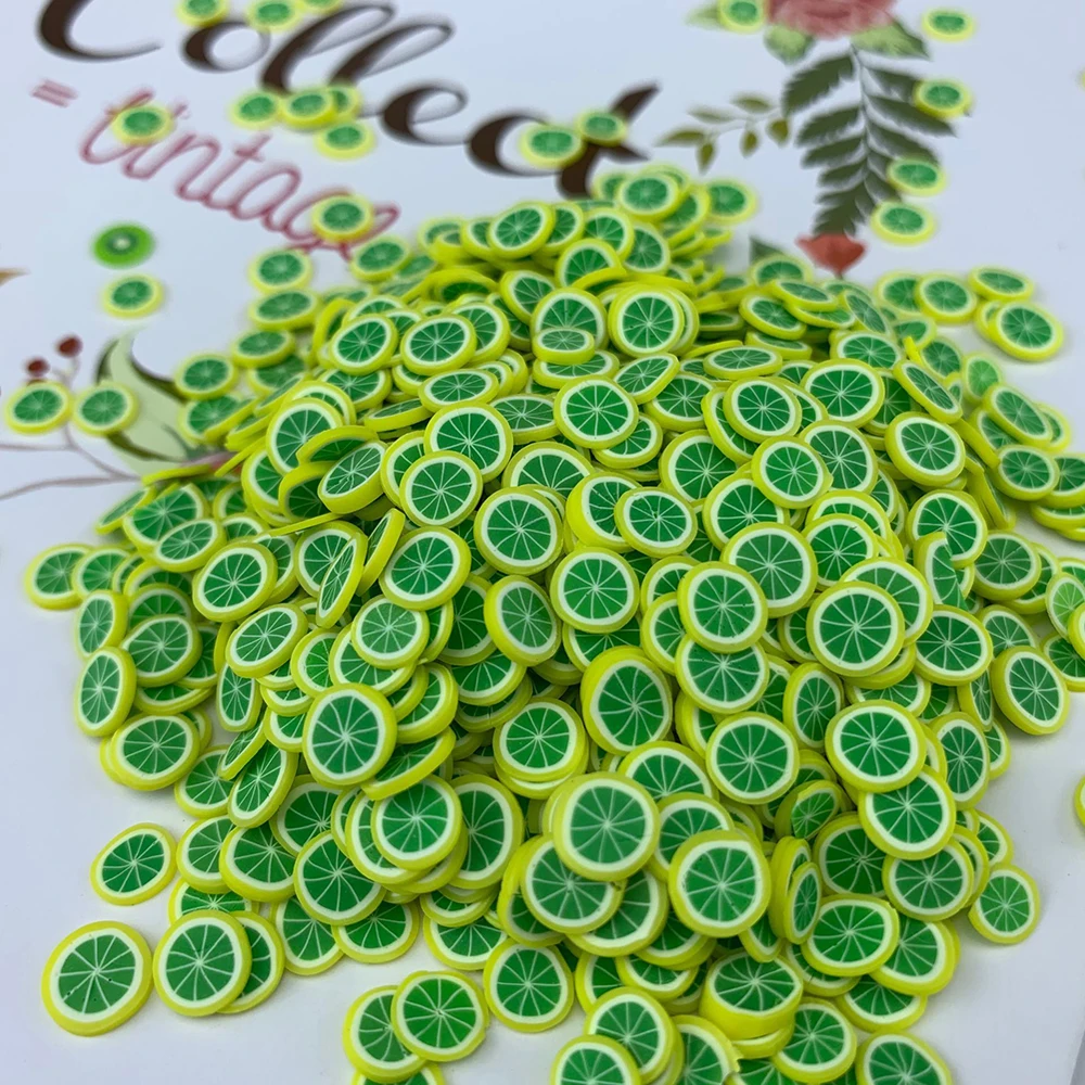 Количество: около 1000 шт в упаковке Диаметр: 5 мм Материал: мягкая глина Особенности: Имитация фруктового ломтика, 13 видов рисунков на ваш выбор. Изготовлен из мягкой глины, нетоксичный и экологически чистый. Подходит для блеск для губ diy, Декор ногтей, Слим микс и т. Д.