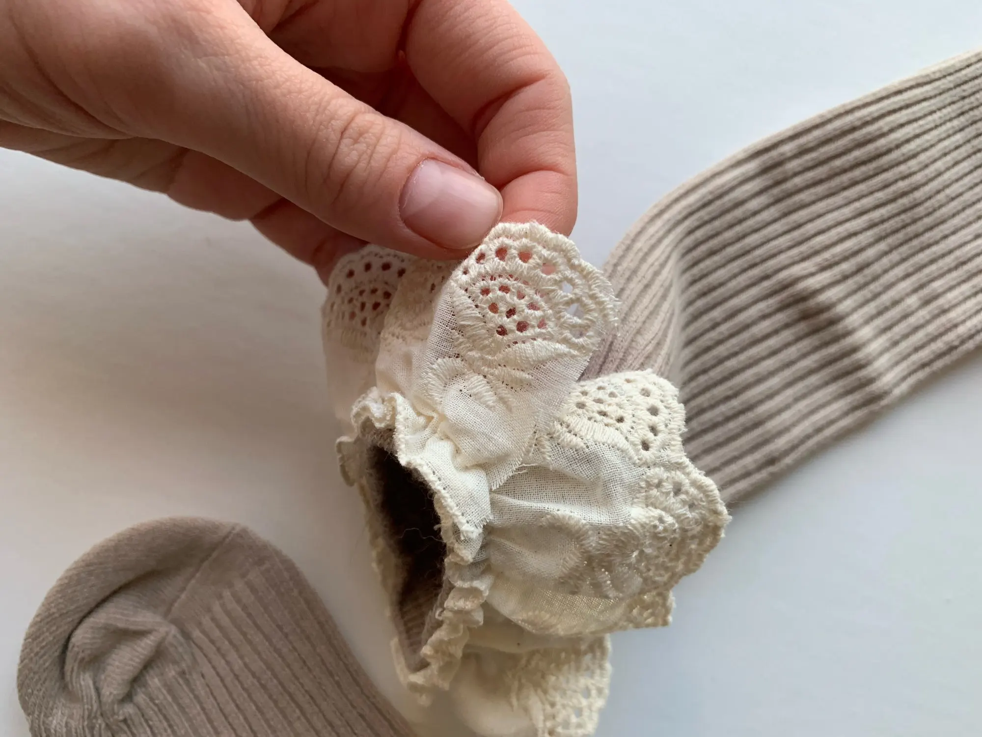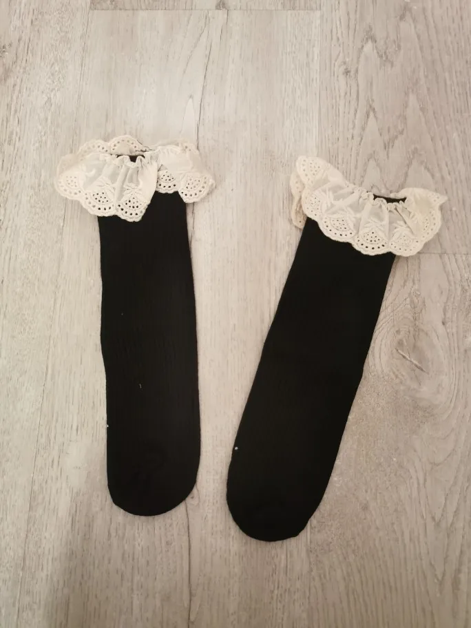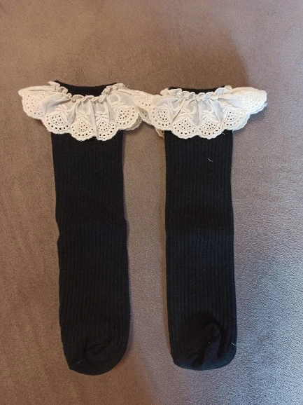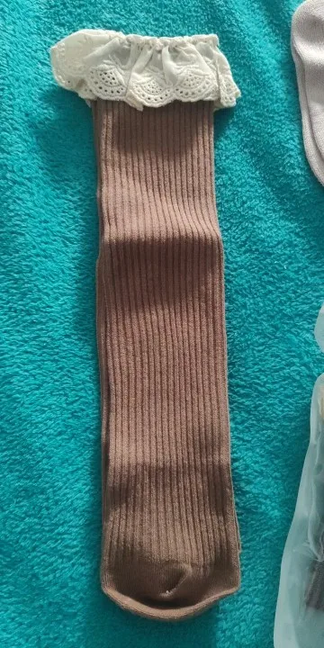 товар пришел быстро. упаковано хорошо. заказывала такие белые и коричневые одного размера ,но белые очень огромные, даже на мою ногу зелезут и будут как носочки короткие. ребенку 6-12 будут как гольфы до попы. они без пяточек. качество хорошее, не синтетика,позже на хлопок. так они симпатичные , будем одевать ближе к году