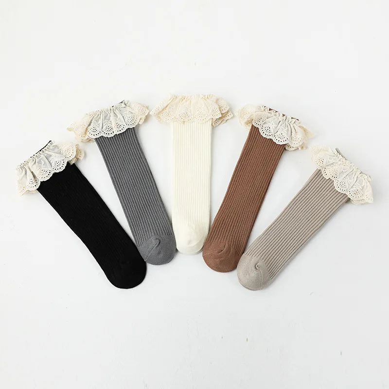 Гольфы с оборками для новорожденных девочек, модные кружевные гольфы для малышей, Осенние хлопковые Вязаные гольфы для маленьких девочек