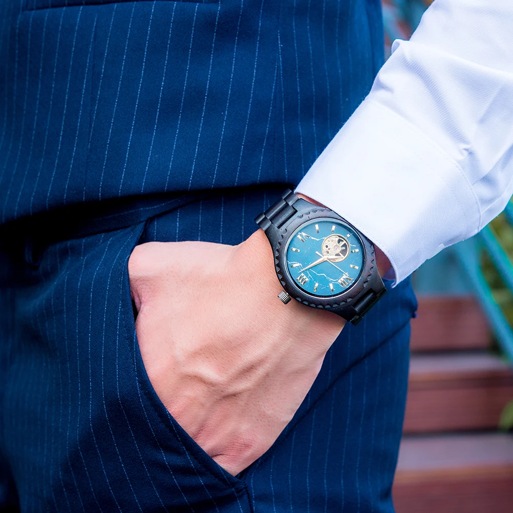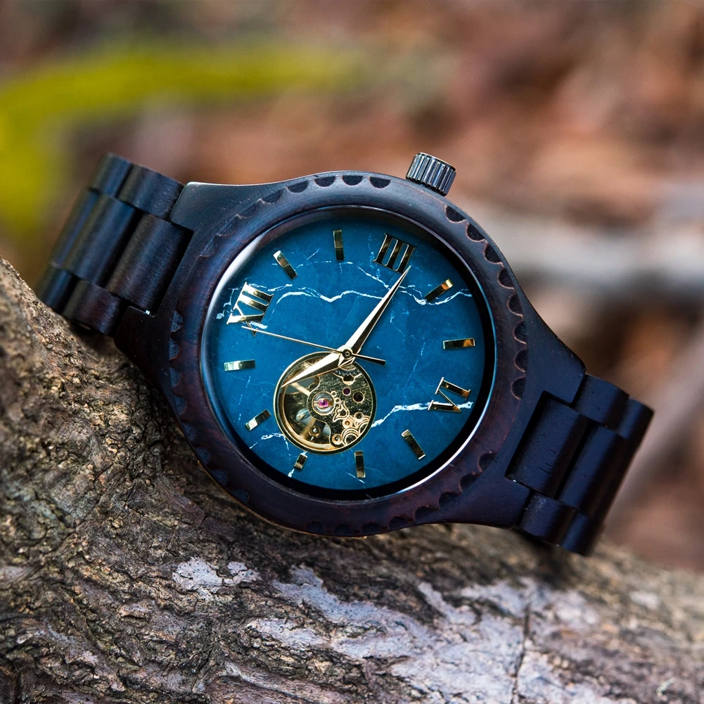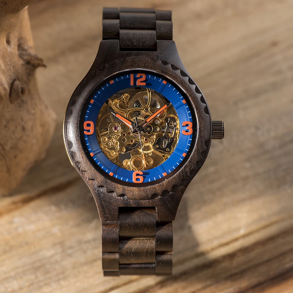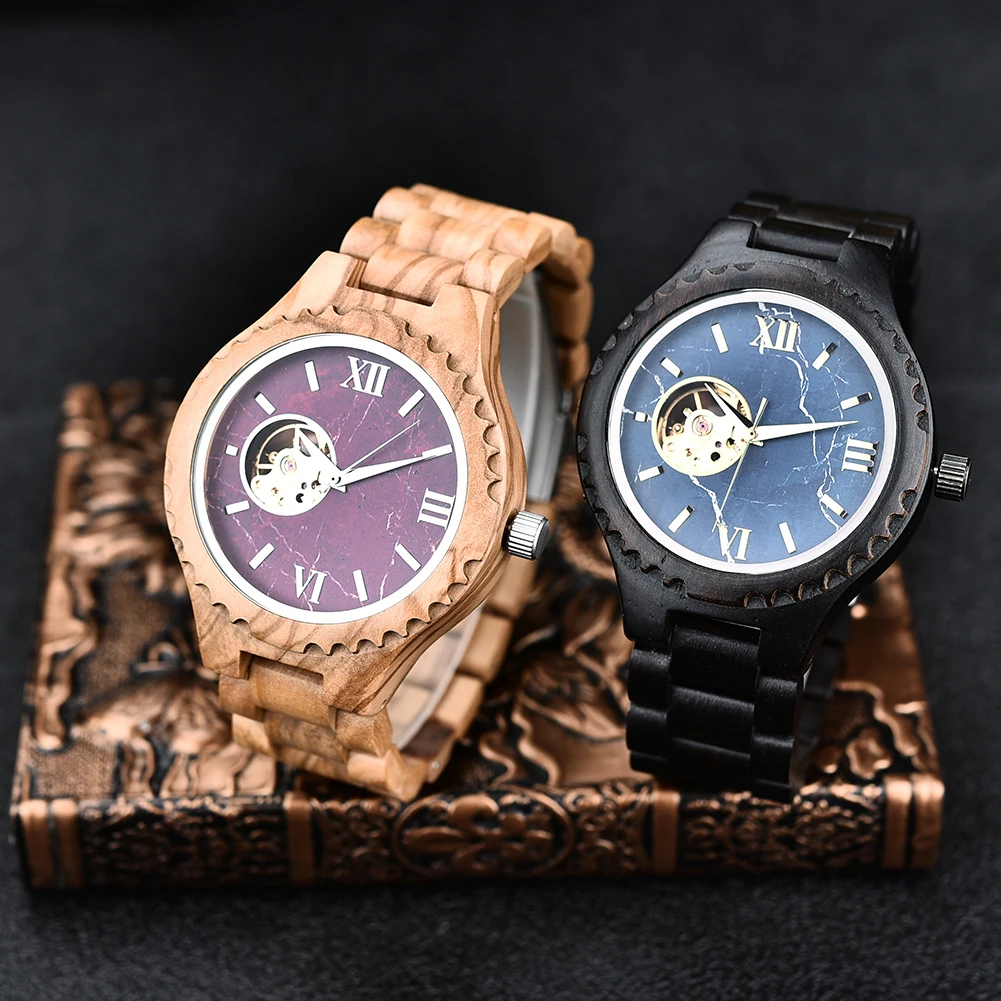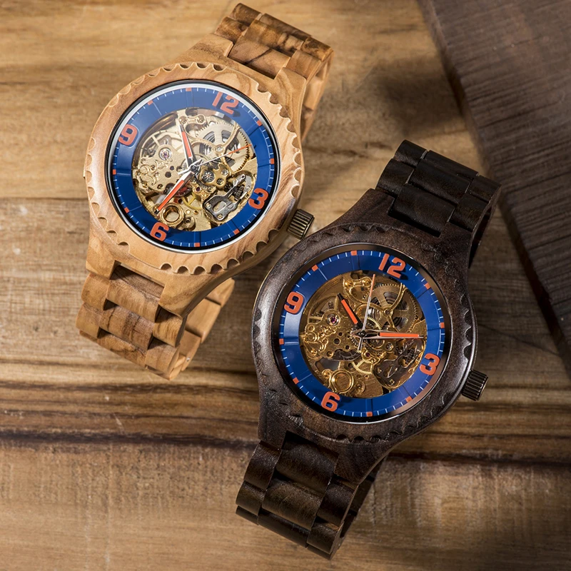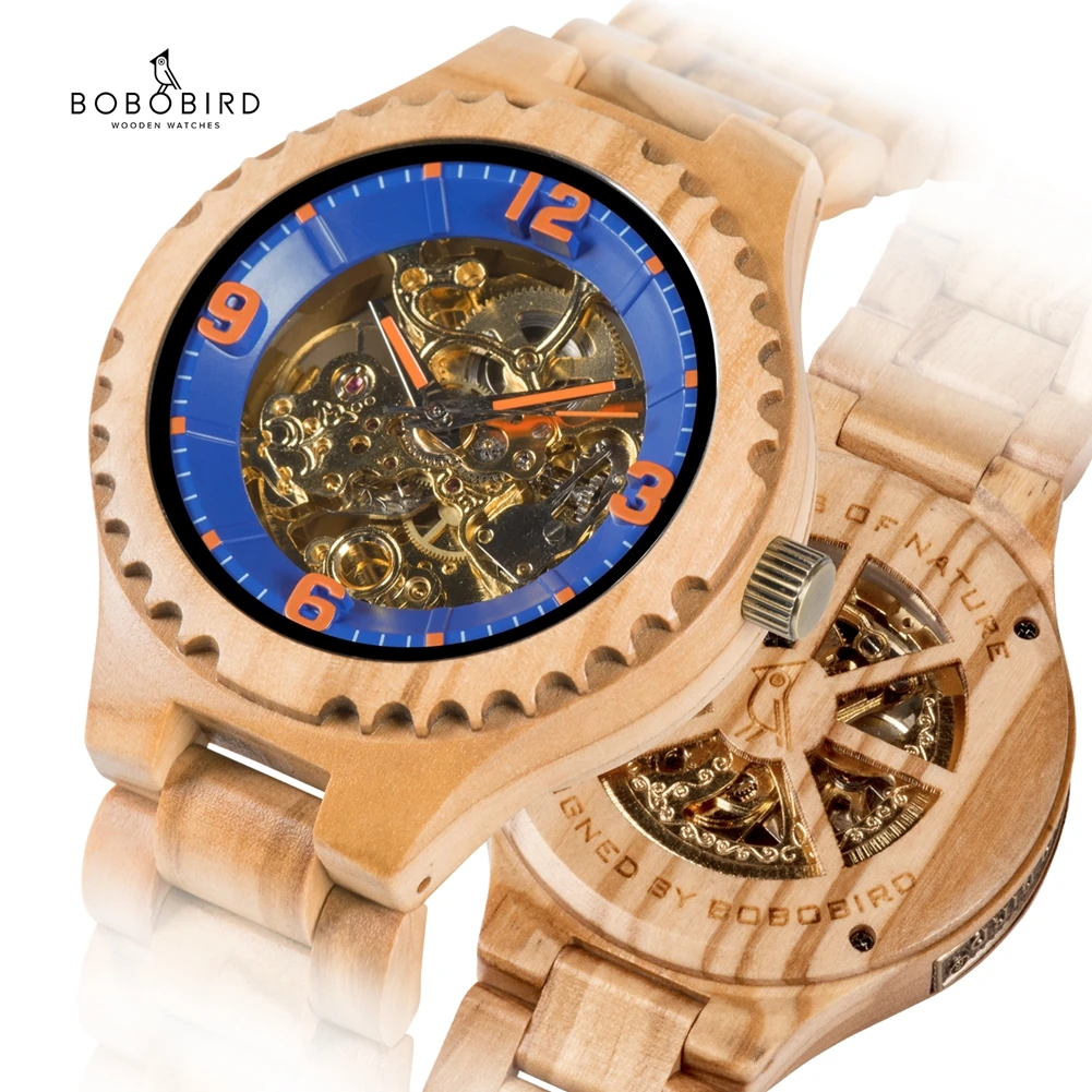 Мужские автоматические часы BOBO BIRD, новые модные деревянные водонепроницаемые мужские часы с индивидуальным креативным подарком на Рождество