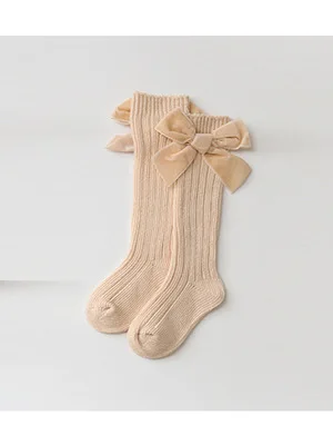 Гольфы с большим бархатным бантом для новорожденных девочек, осенне-зимние теплые Вязаные гольфы в рубчик для младенцев