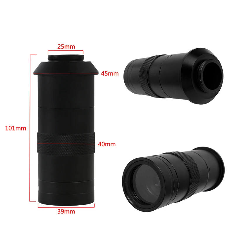 Увеличение мощности на 0,12-2X (около 8X - 100X на дисплее)Рабочее расстояние: 100 ммПоле зрения: 2,4 мм-32 ммРазмер: 115 мм (L) * 40 мм (DIA)Вес: 210 гРабочее расстояние: 30-4,5 смПожалуйста, не прикасайтесь к объективу руками, это вызовет царапины линзы. Если вам нужно обработать его, протрите его профессиональной тканью для камеры.