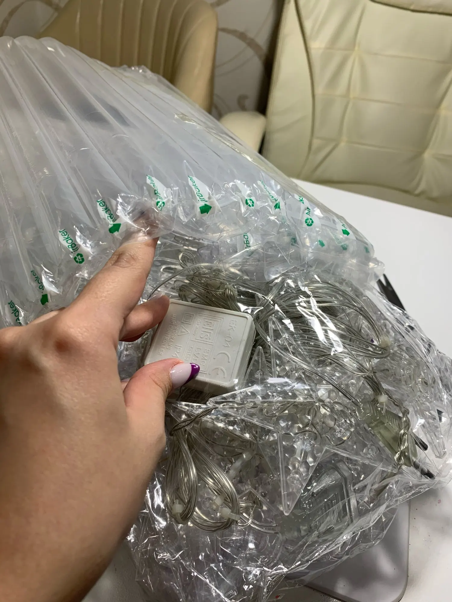гирлянда пришла быстро, хорошо упаковпно , все работает, можно соединить со второй гирляндой. есть небольшой запах.
