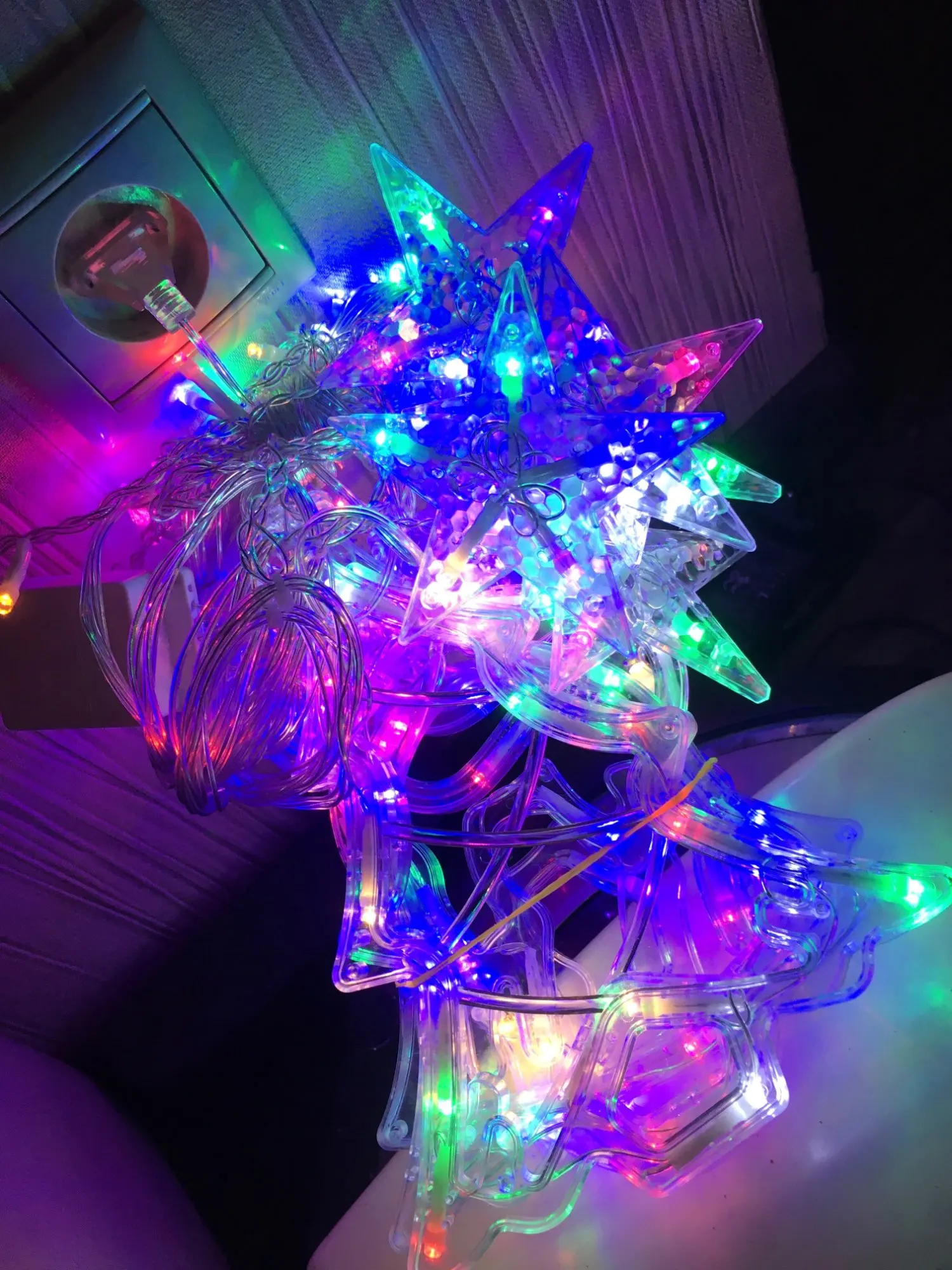Не первый раз заказываю гирлянду на Али. Сморится супер. Но рекомендую сразу покупать удлинитель для розетки, так как шнур короткий. Внимательно смотрите описание, все точно! Переключатель режимов будет находится у потолка, это конечно не очень удобно, но я и не пользуюсь им, сразу выбрала режим и все!
