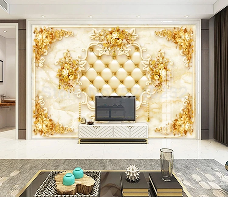 Пользовательские 3D обои фрески золотые цветы ювелирные изделия мраморный мягкий пакет Гостиная ТВ фон искусственная Роспись стен
