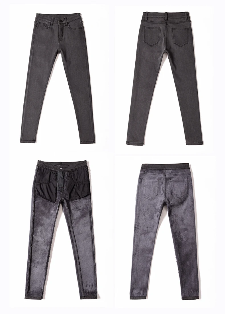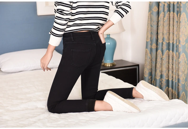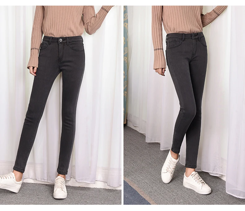 Узкие женские джинсы, теплые хлопковые штаны на флисе, синего, черного, серого цвета, на зиму, размера плюс