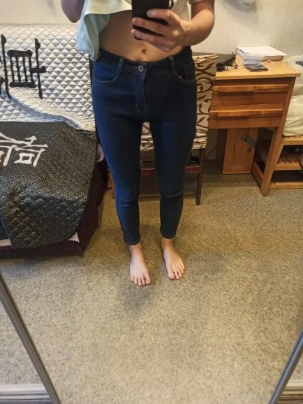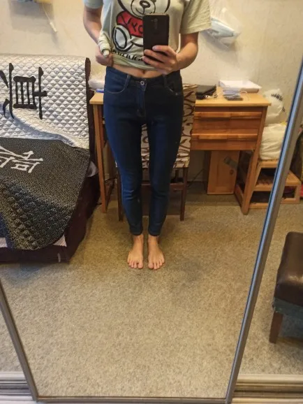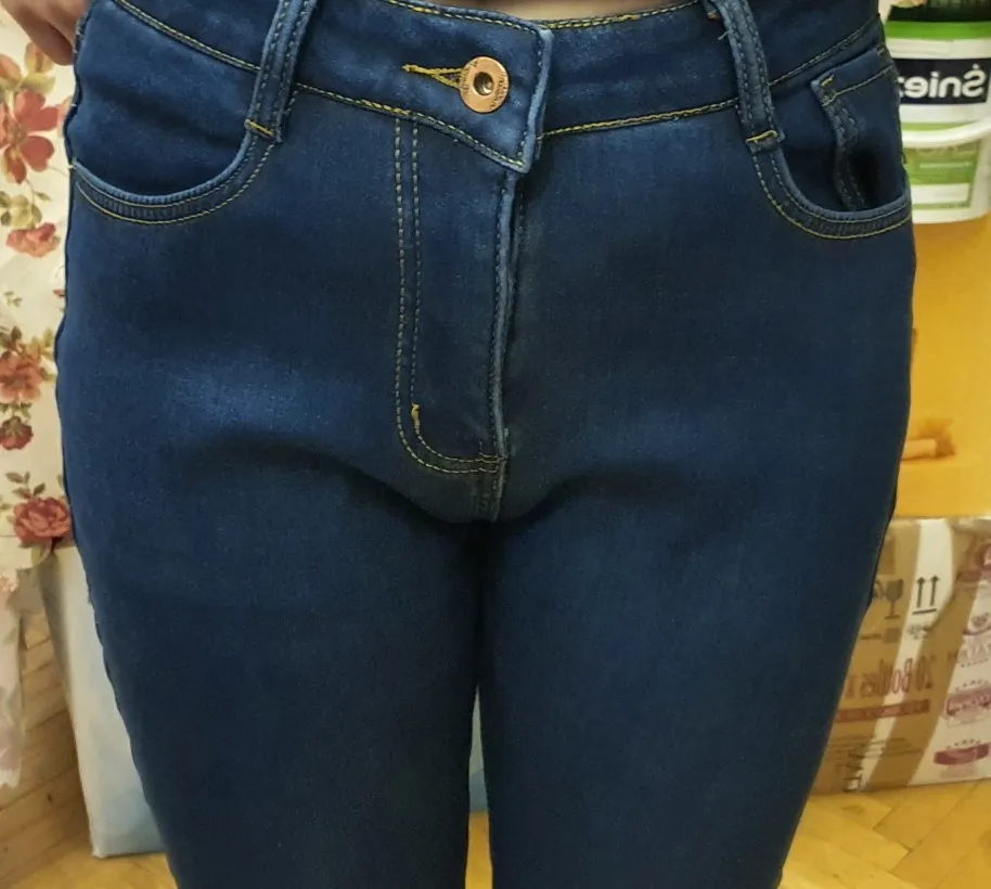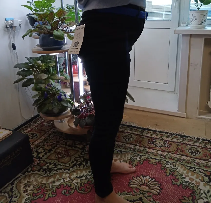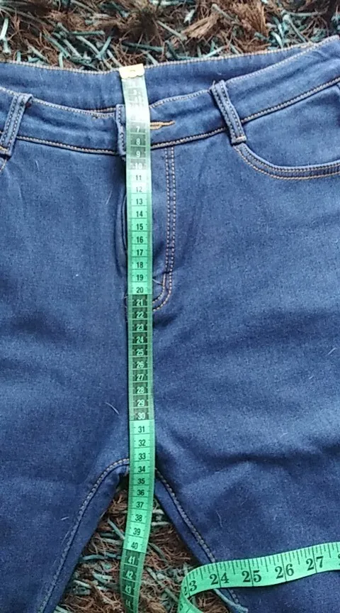 Заказ пришёл быстро. Джинсы сшиты хорошо, но очень странный фасон! Пояс и бёдра большие, ноги обтянули как лосины. У меня большой живот боялась в поясе будут малы, но нет, снемаю не расстёгивая. Ношу с ремнём. Можно было взять 34 размер, но в ногах налезут ли? ОТ 107, ОБ 110. Джинсы тёплые, в помещении даже жарко в них.