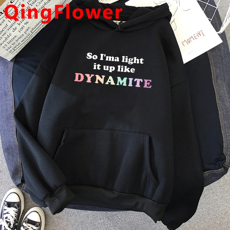 Женская толстовка в Корейском стиле Kpop, Повседневная Толстовка в Корейском стиле с принтом динамита, с коротким рукавом, в стиле хип-хоп
