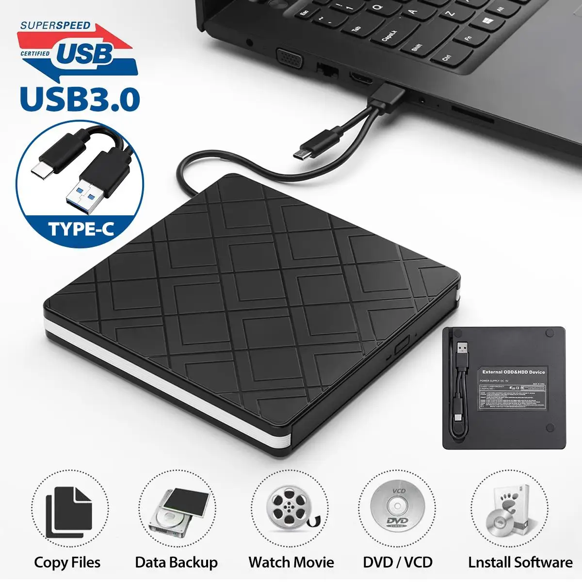 Внешний USB3.0USB2.0TYPE-C DVD RW CD писатель тонкий решетки шаблон привод горелки ридер плеер для ПК ноутбука оптические диски