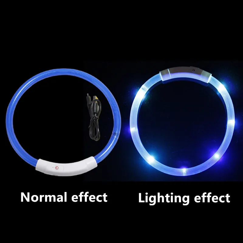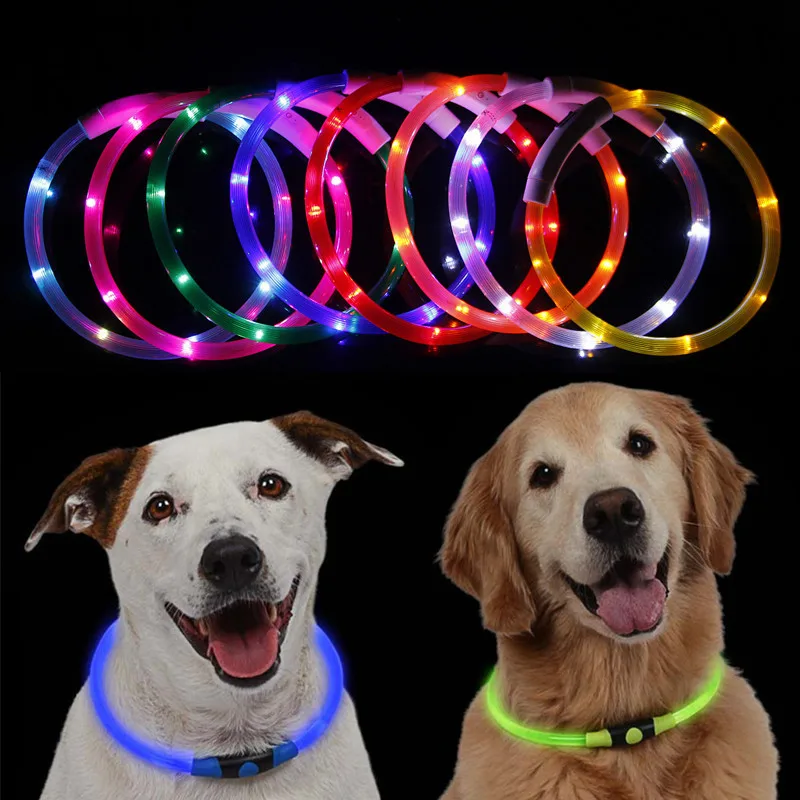 Светодиодный ошейник для домашних питомцев, перезаряжаемый от USB, предупреждающий ошейник для собак с подсветкой, Регулируемый силиконовый ошейник для домашних питомцев, режущий до размера
