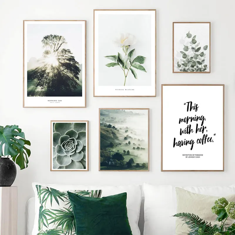 Зеленые настенные художественные принты с растениями, ретро постер ...