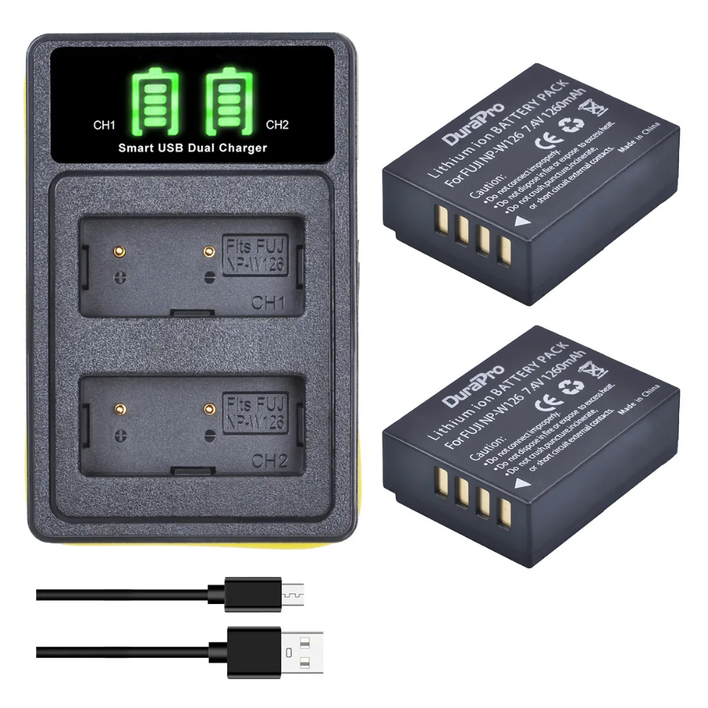 DuraPro 1260 мАч NP-W126 NP W126 батарея + светодиодный USB зарядное устройство с Type C для Fujifilm HS50 HS35 HS33 HS30EXR XA1 XE1 X-Pro1 XM1 X-T10
