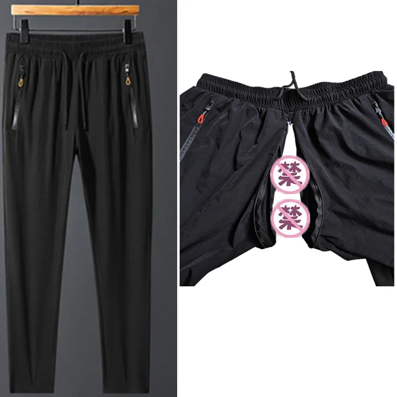 Уличные сексуальные брюки для мужчин, сексуальные мужские брюки на молнии на весну и осень, повседневные мужские брюки, одежда, сексуальная эротическая одежда