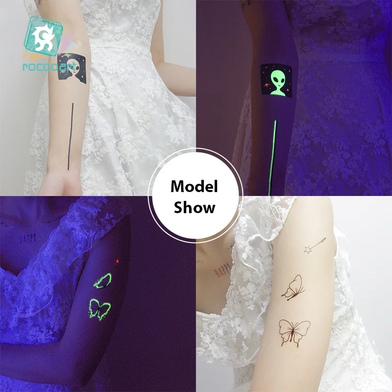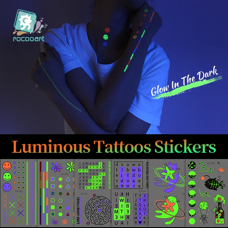 Светящиеся тату-наклейки Rocooart временные искусственные татуировки, светящиеся в темноте татуировки и луна, декоративные наклейки, модные татуировки