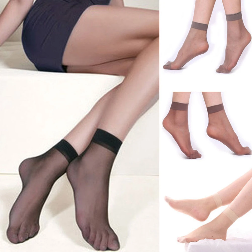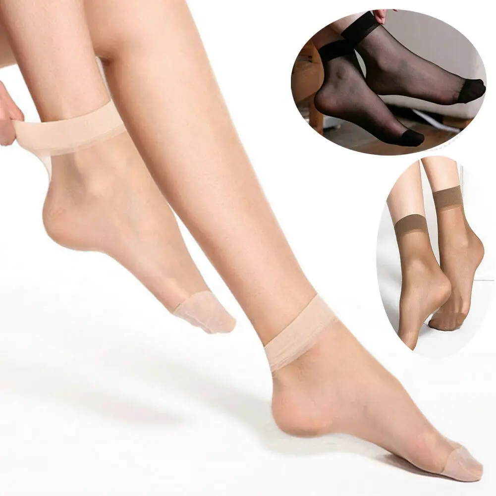10 пар, женские носки, нейлоновые эластичные короткие носки, однотонные шелковые короткие носки, прозрачные дамские носки