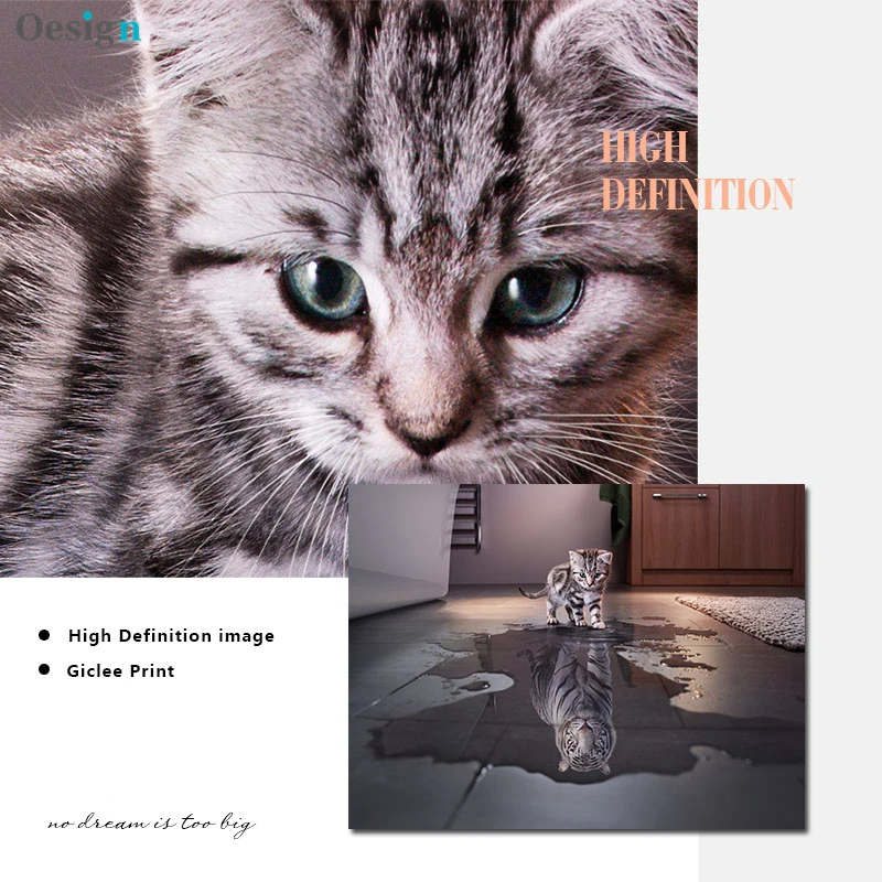 Кошка, тигр, отражение, животные, Забавный постер, Простой Холст, художественный принт, Мотивационная картина на стену для украшения гостиной