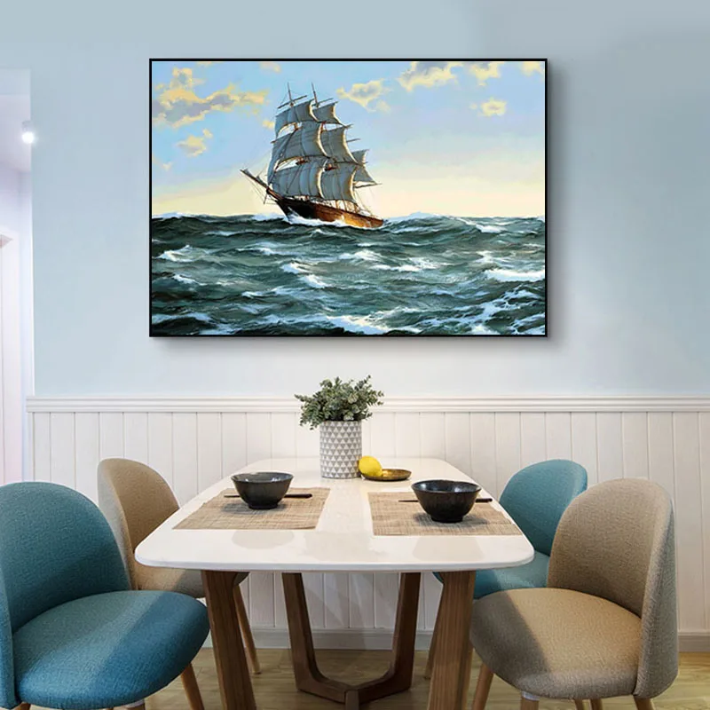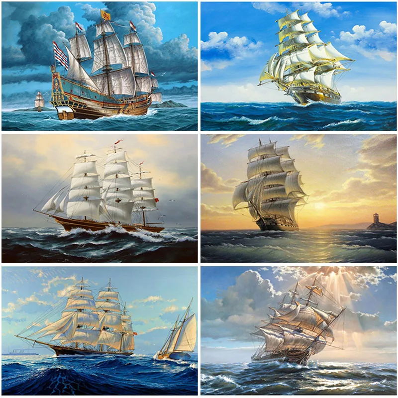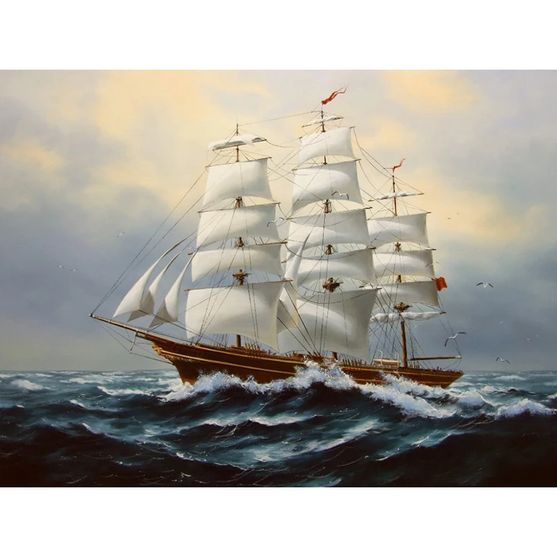 Алмазная 5D картина сделай сам, корабль, парусная лодка, вышивка кр...