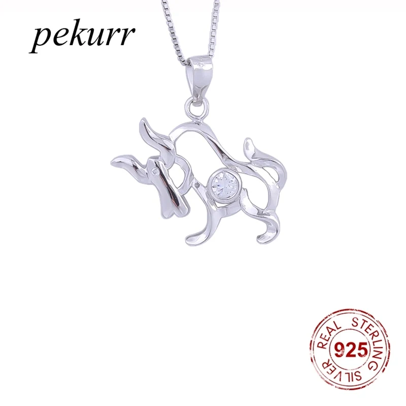Ожерелье Pekurr из стерлингового серебра 925 пробы с цирконием, длинными рогами и быком, для женщин и мужчин, подвески с кристаллами в виде животных, модные ювелирные украшения для вечеринок