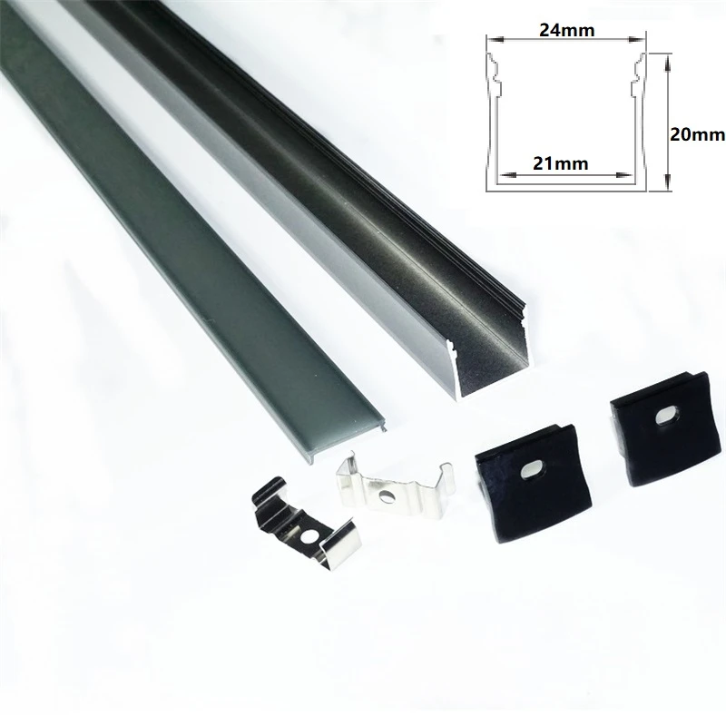 Светодиодный алюминиевый профиль с черным корпусом 0,5 м20 дюймов1,64 футов, матовая черная потолочная стена с покрытием, Ширина 24 мм, 12 В, световой Канал для шкафа
