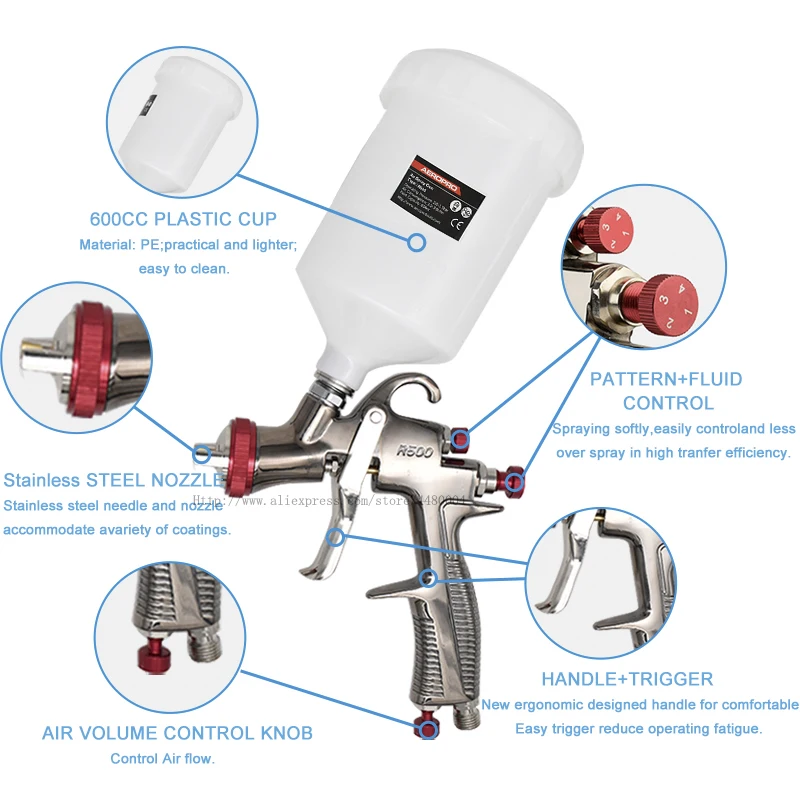 LVLP пистолет-распылитель R500 машина гравитационная Подающая Краскораспылитель 1,3/1,5/1,7/2,0 мм распылитель сопла воздушный Краскораспылитель инструменты для дома пистолет-распылитель для автомобиля