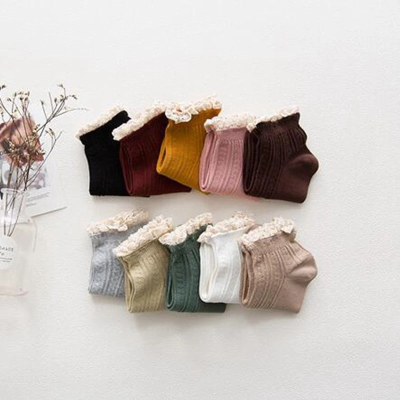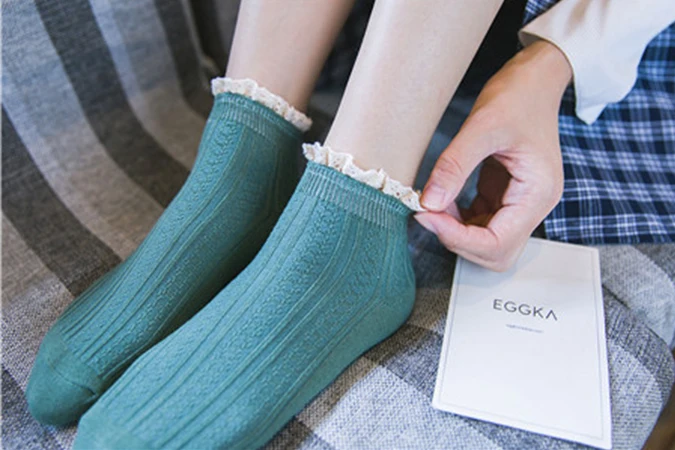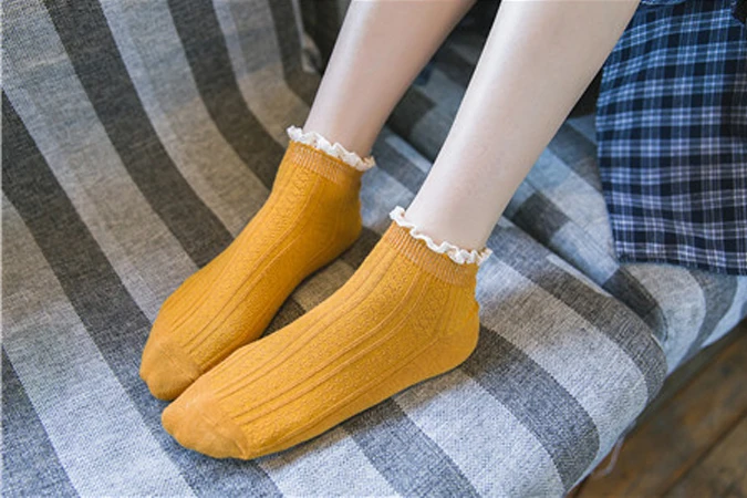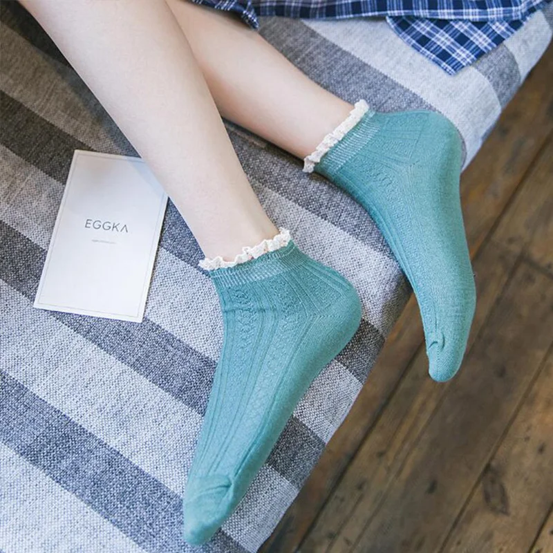 1 пара, женские короткие носки, удобные мягкие хлопковые носки с кружевным принтом, повседневные модные однотонные короткие носки для девочек в простом стиле