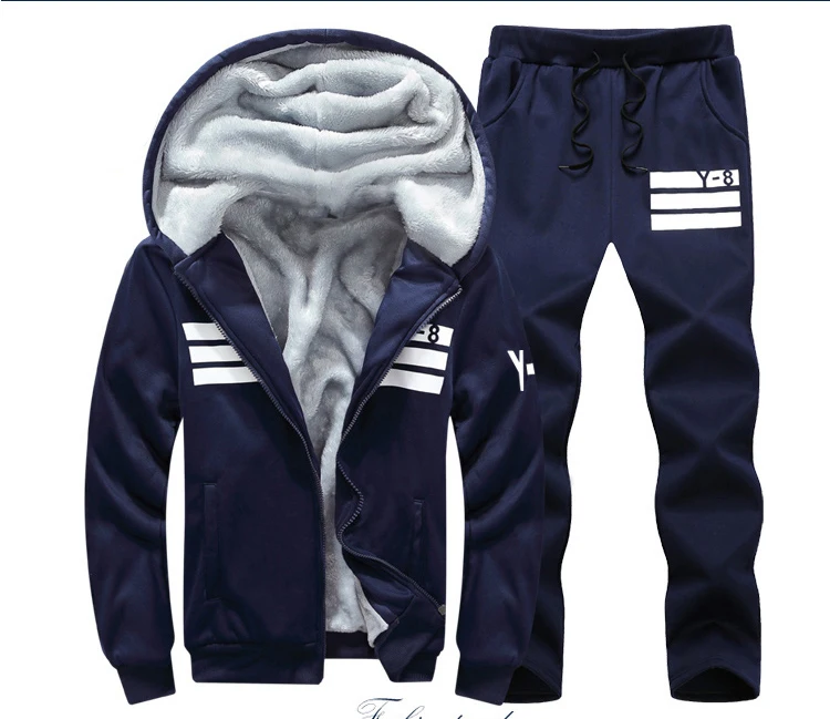 Мужской флисовый спортивный костюм, темно-синий спортивный костюм д...
