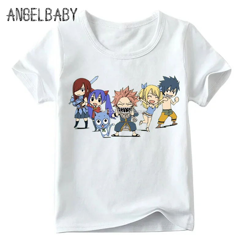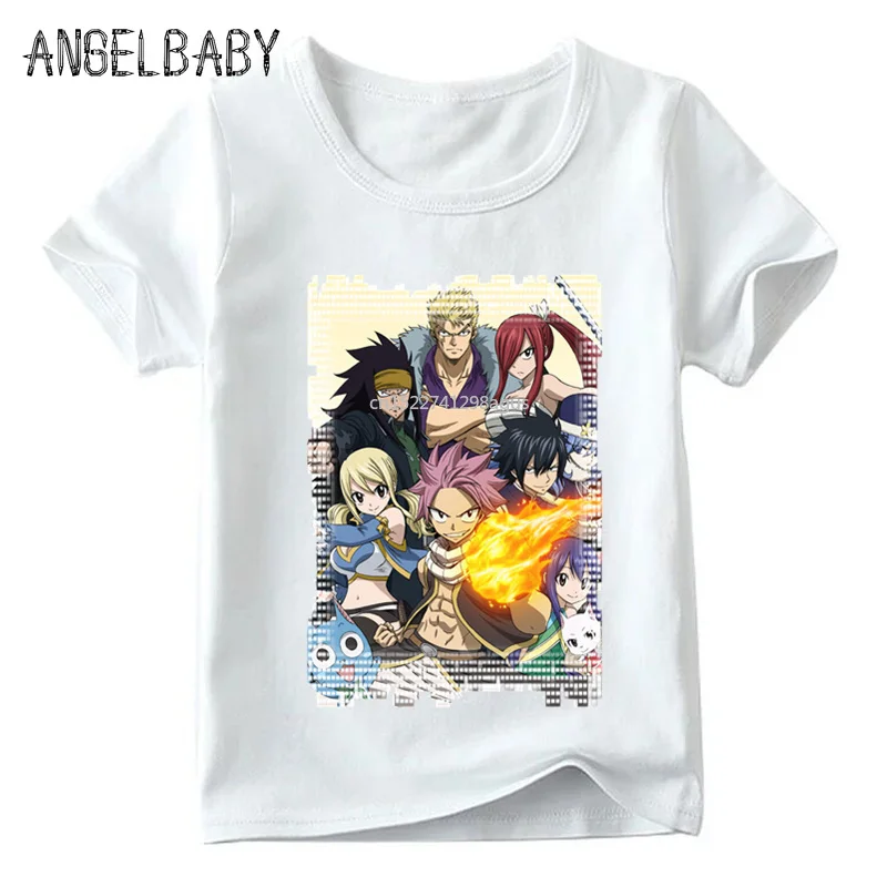 Детская забавная футболка с японским аниме рисунком Феи хвоста, летние белые топы для мальчиков и девочек, детская мультяшная футболка, ooo4345
