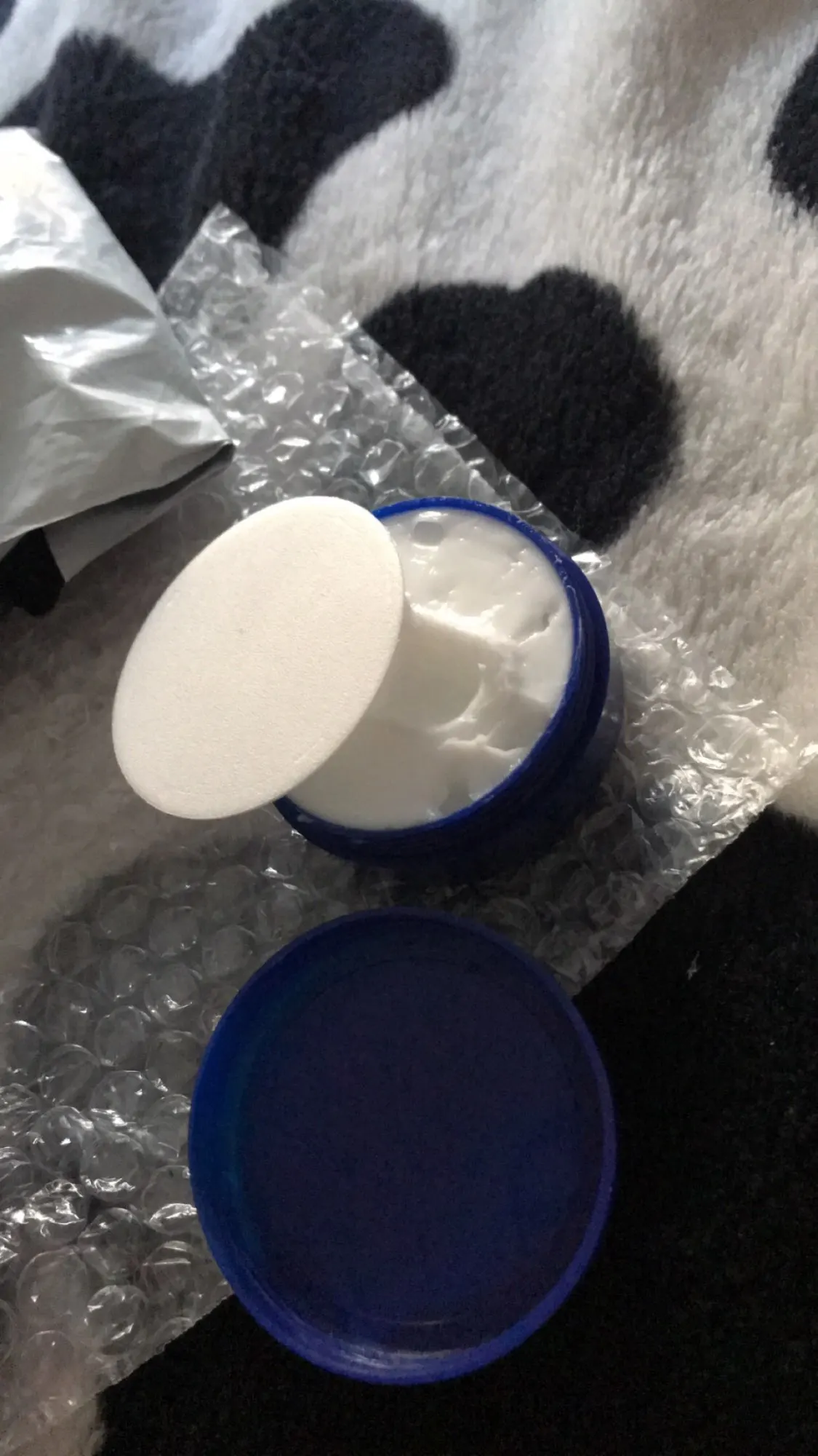 Коробочка пластиковая. Упаковано бы в обычный пакет с одним слоем пупырок. Очень сильный запах. Когда получала крем на почте, то почувствовала его запах ещё до того, как увидела посылку. Крем жирный, но впитывается хорошо. Отпишусь через неделю о результатах. До Эстонии посылка шла чуть меньше двух месяцев.