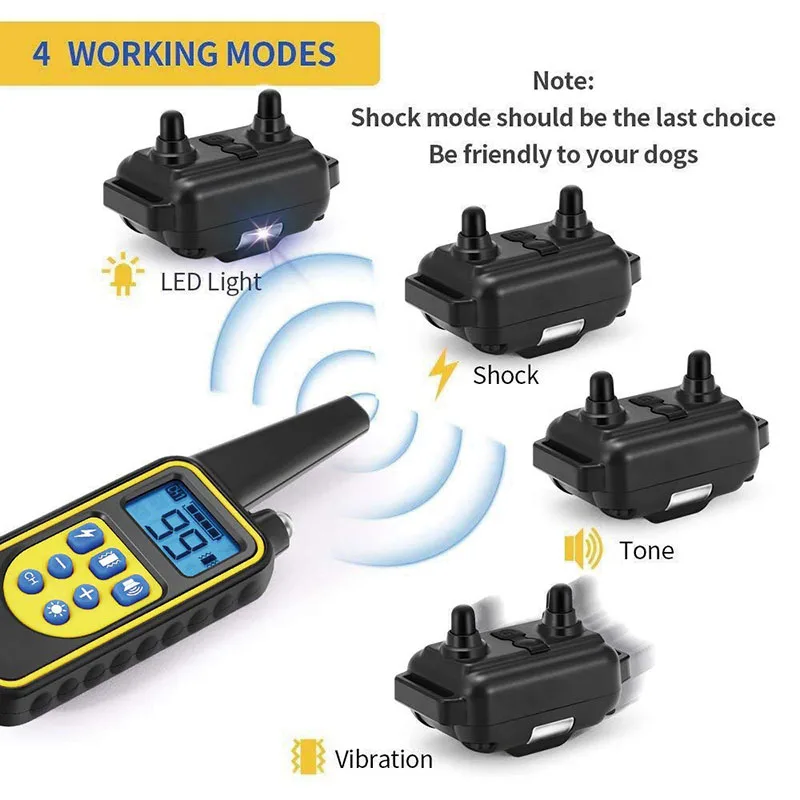 Тренировочный ошейник для собак-Это полезный и эффективный инструмент, помогающий исправить неправильное поведение вашей собаки, который может дать вам лучшее-обученный и хорошо себя вести. Поставляется с эффективным диапазоном дистанционного управления 875 ярдов/2625 футов и высокочувствительным приемником для домашних животных, который приносит много удобства для обучения вашего питомца.