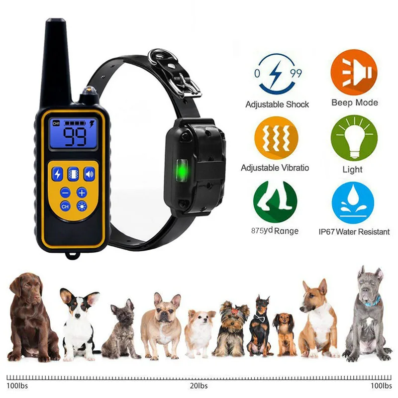 Ошейник для дрессировки собак, водонепроницаемый, 800 м, с ЖК-дисплеем