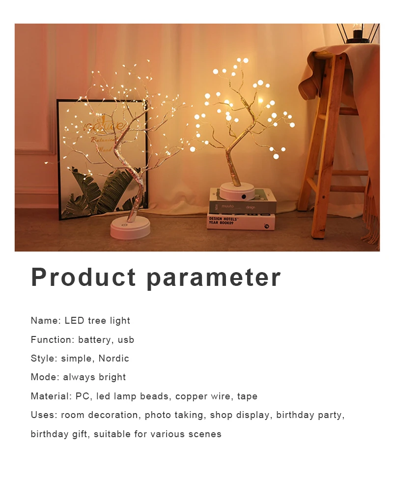 Размер изделия: основа 12 см. 36 головок-высота лампы из жемчужного дерева составляет около 45 см, 108 головок-высота лампы из медной проволоки составляет около 50 см, базовый переключатель-Сенсорный Тип, более высокая атмосфера