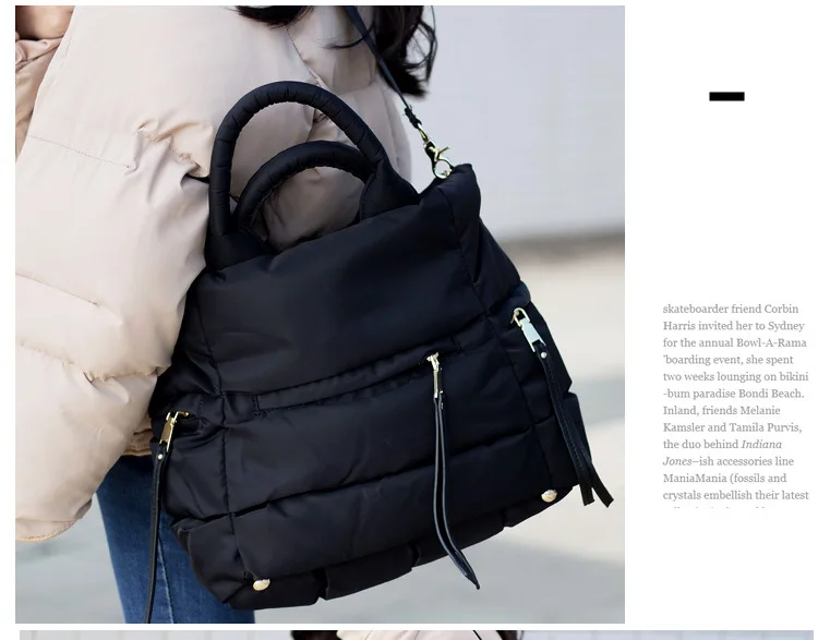 2022 зимняя вместительная сумка-тюк, Женская Повседневная Хлопковая Сумка-тоут, женская сумка через плечо с подкладкой из пуха и перьев, женские сумки