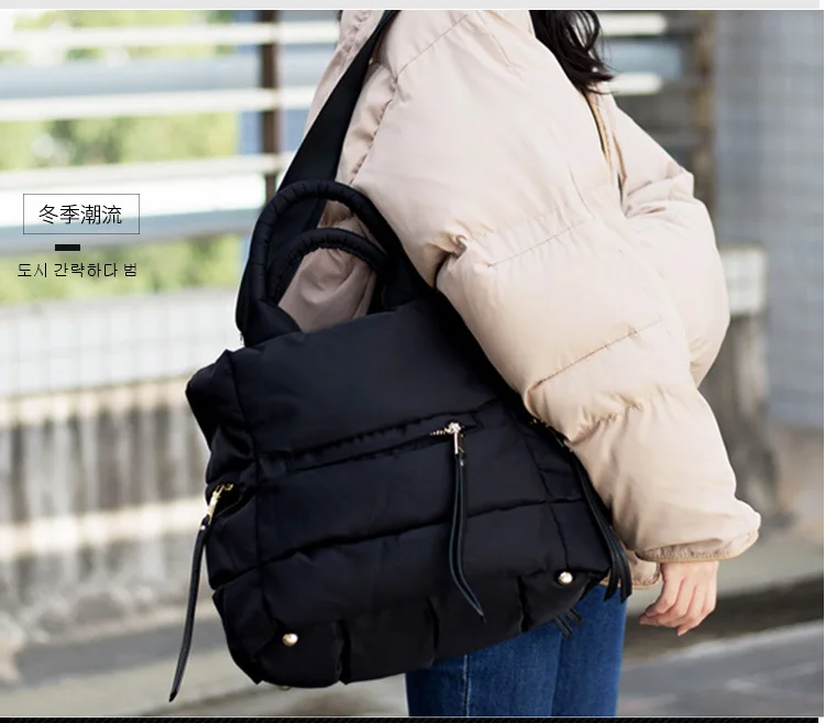 2022 зимняя сумка-тюк, Женская Повседневная Хлопковая Сумка-тоут, сумка на пуху с подкладкой из перьев, женская сумка через плечо, Bolsas femininas
