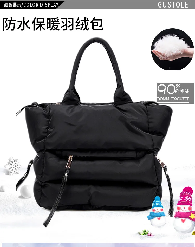 Зимняя мягкая хлопковая сумка на плечо с подкладкой из пуха и перье...